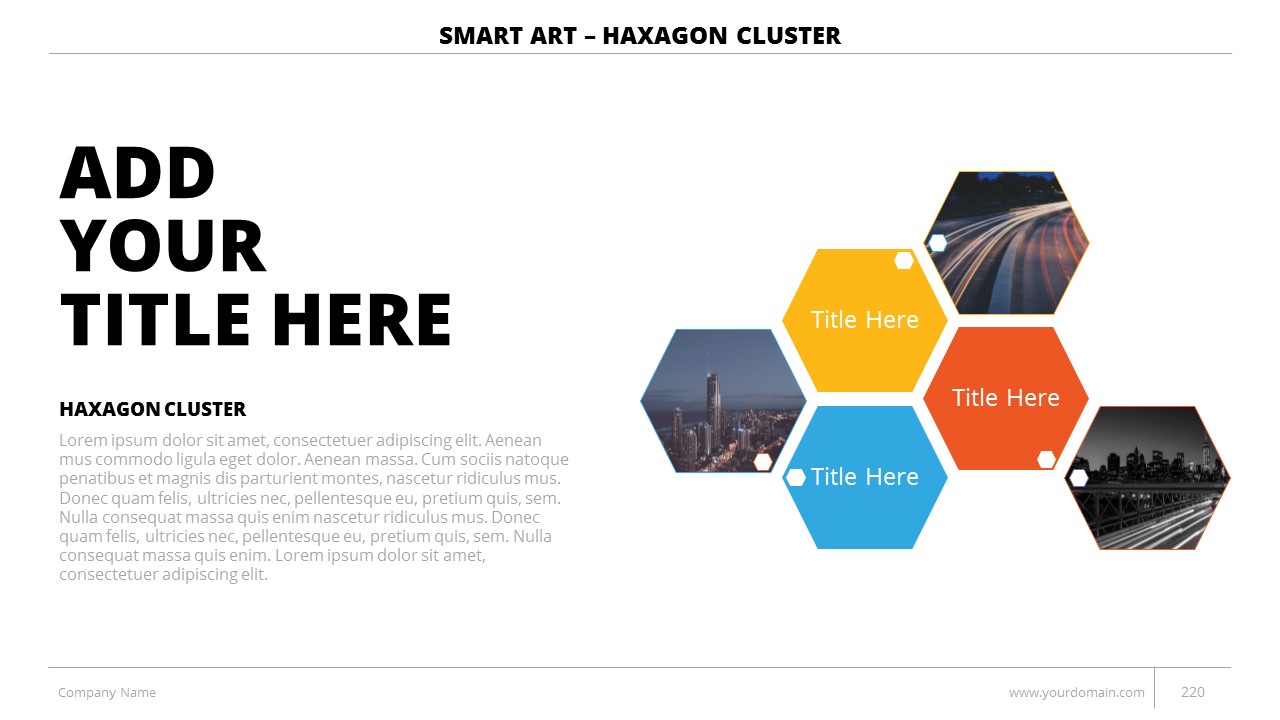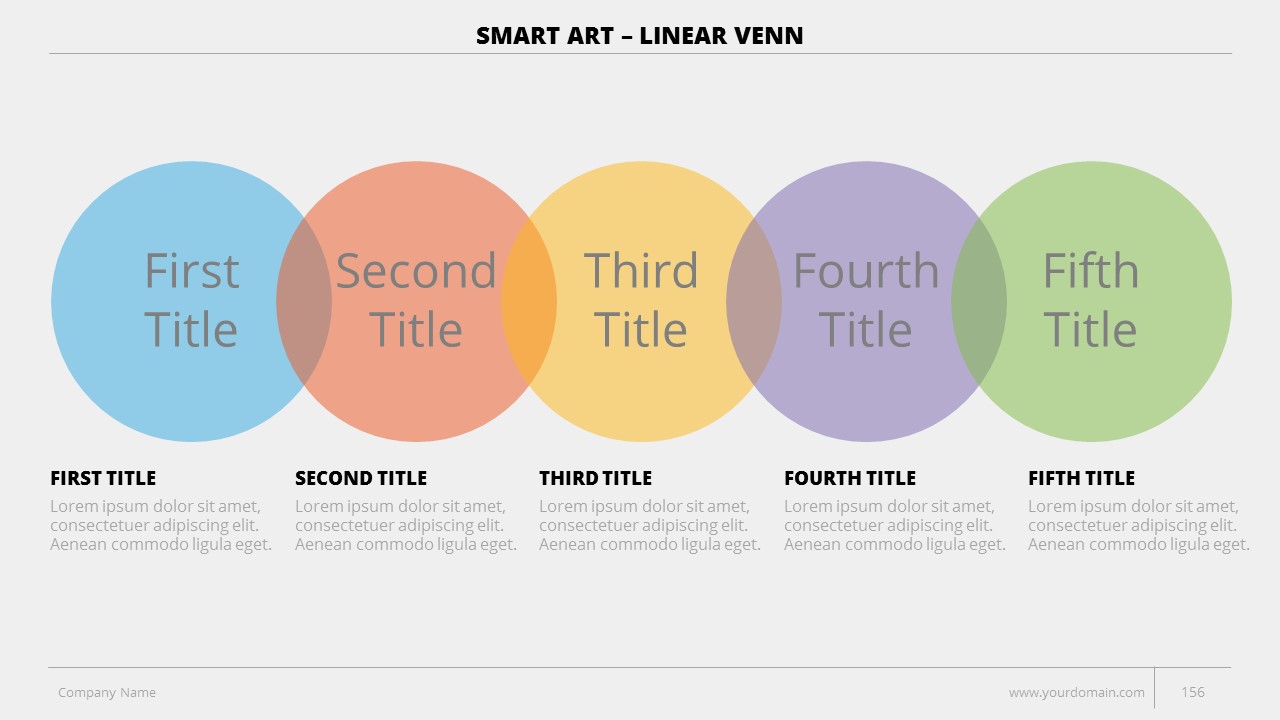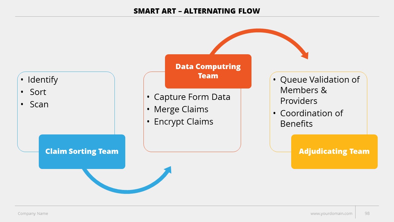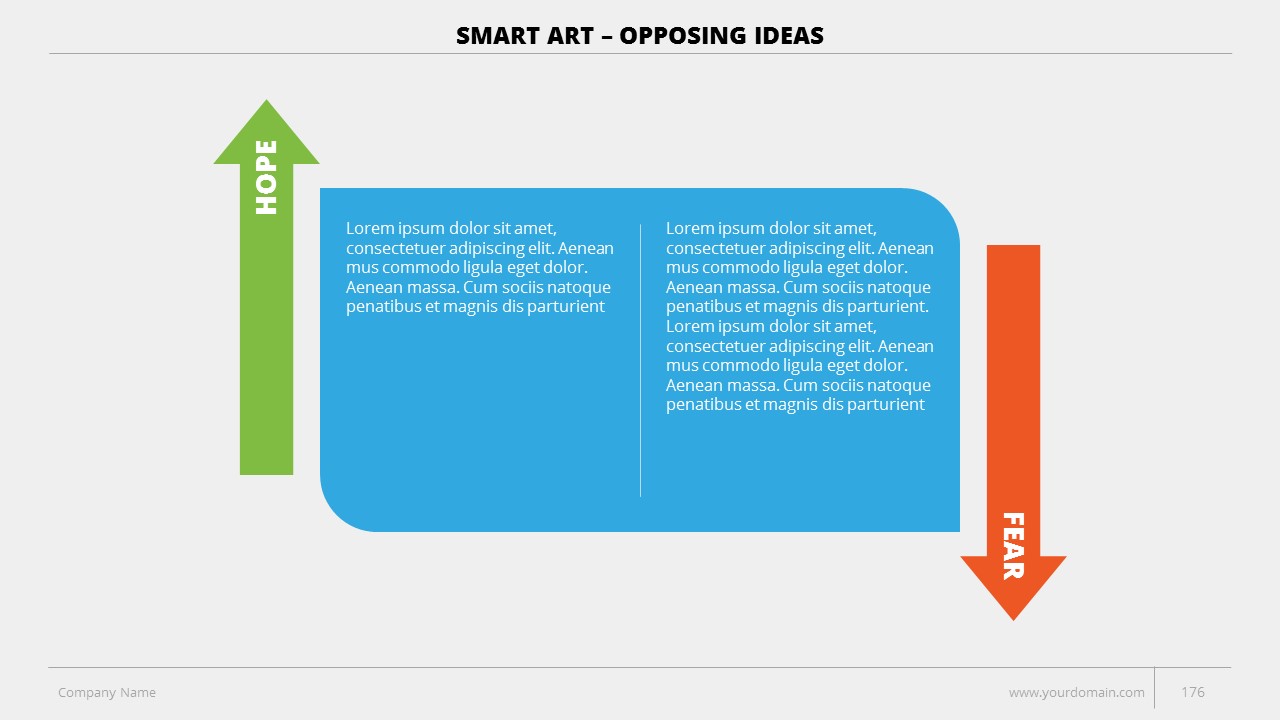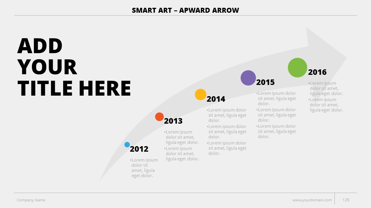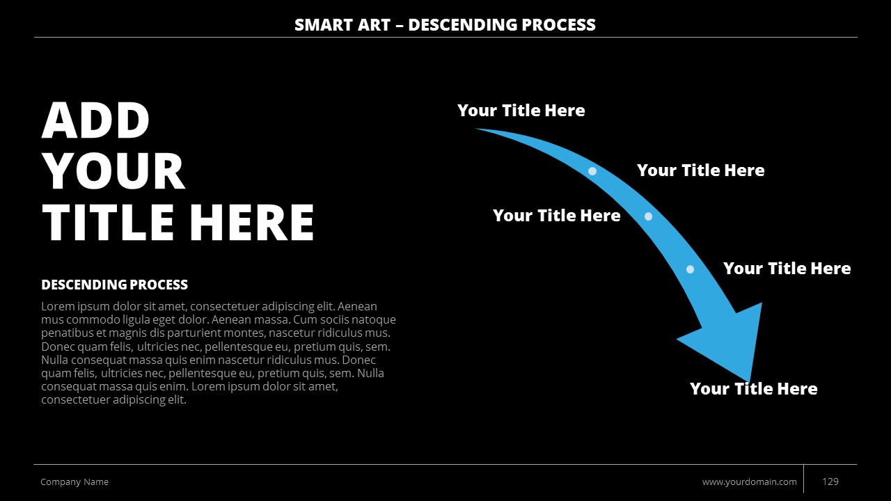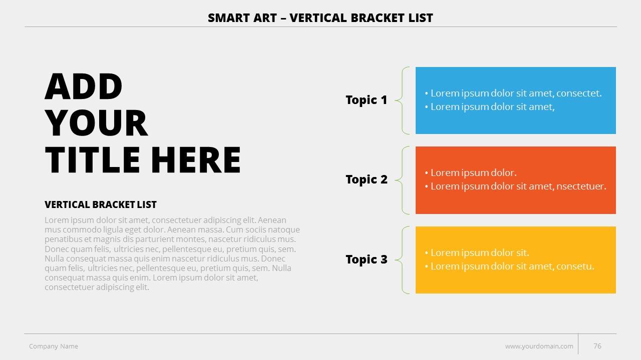- +150 Categorized SmartArt Slides easy to use and edit (List SmartArt, Relationship SmartArt, Process SmartArt, Matrix SmartArt, Cycle SmartArt, Pyramid SmartArt, Hierarchy SmartArt, Picture SmartArt).