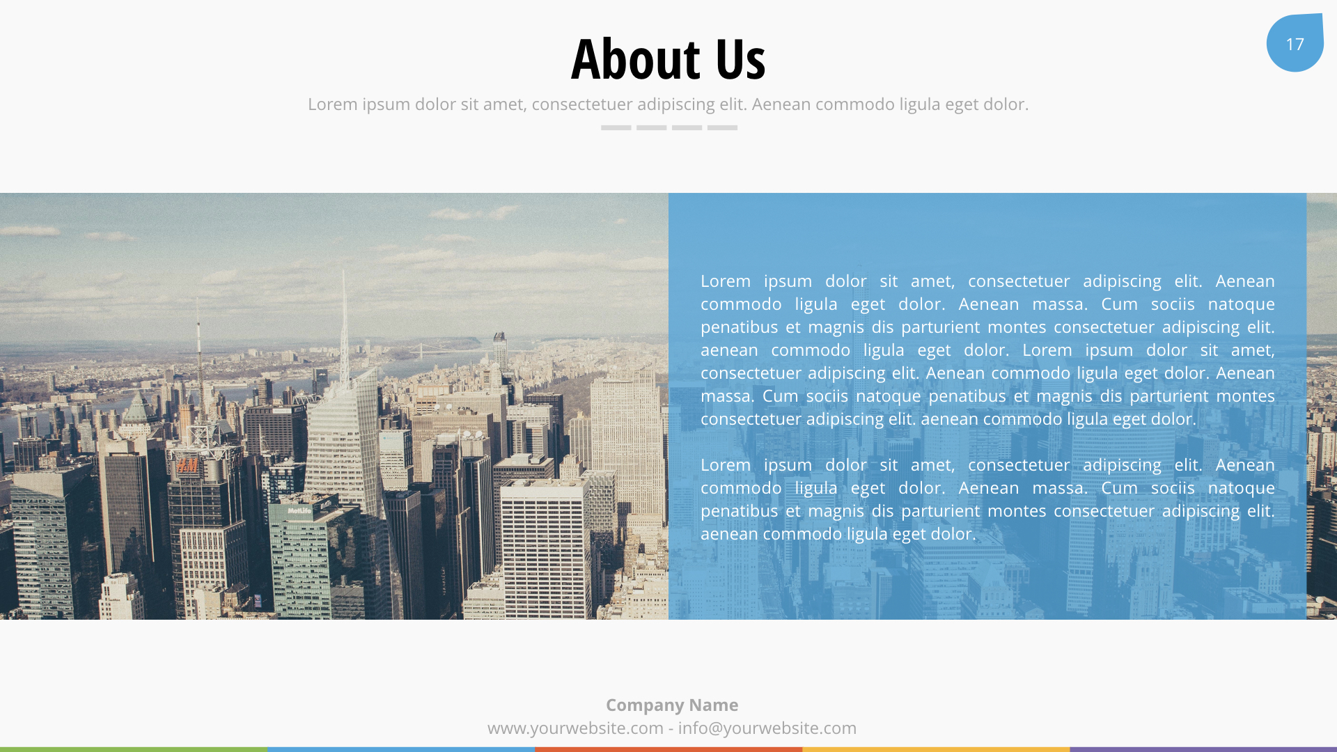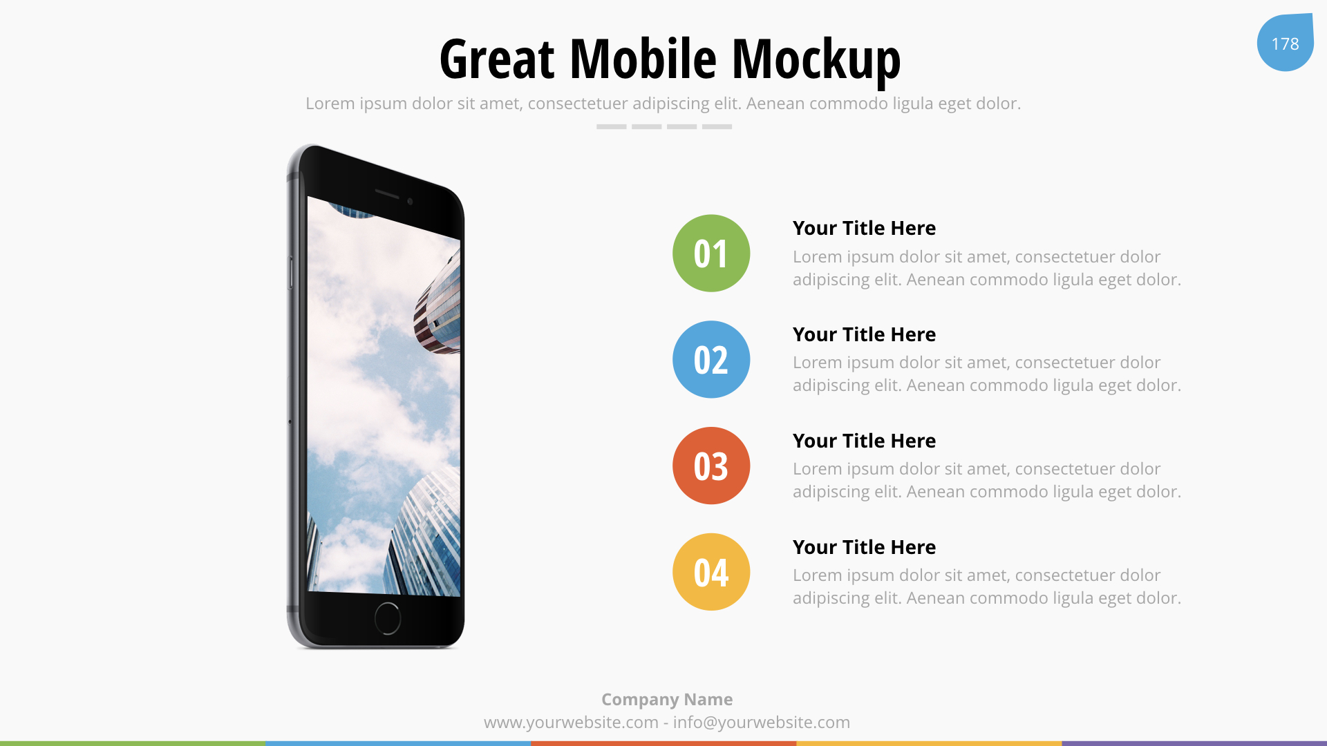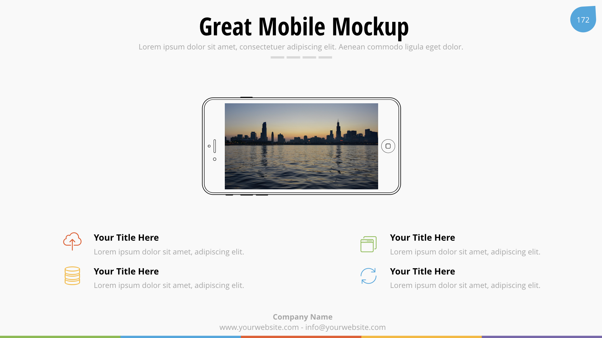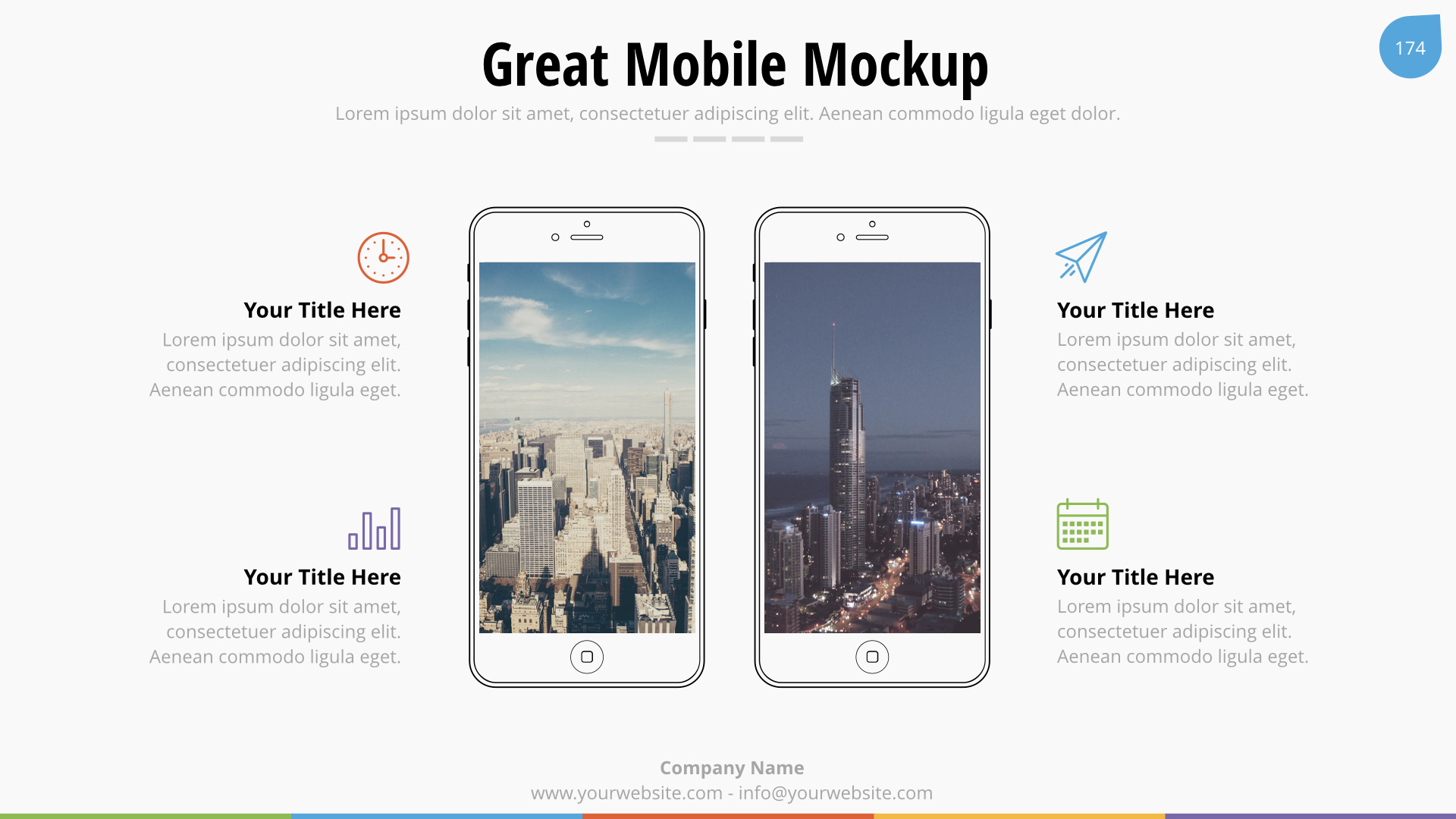 We used image placeholders and master slides, you only need the Keynote to edit all the information, images and shapes. It?s so easy to use, you won’t need special skills. Buy it now!