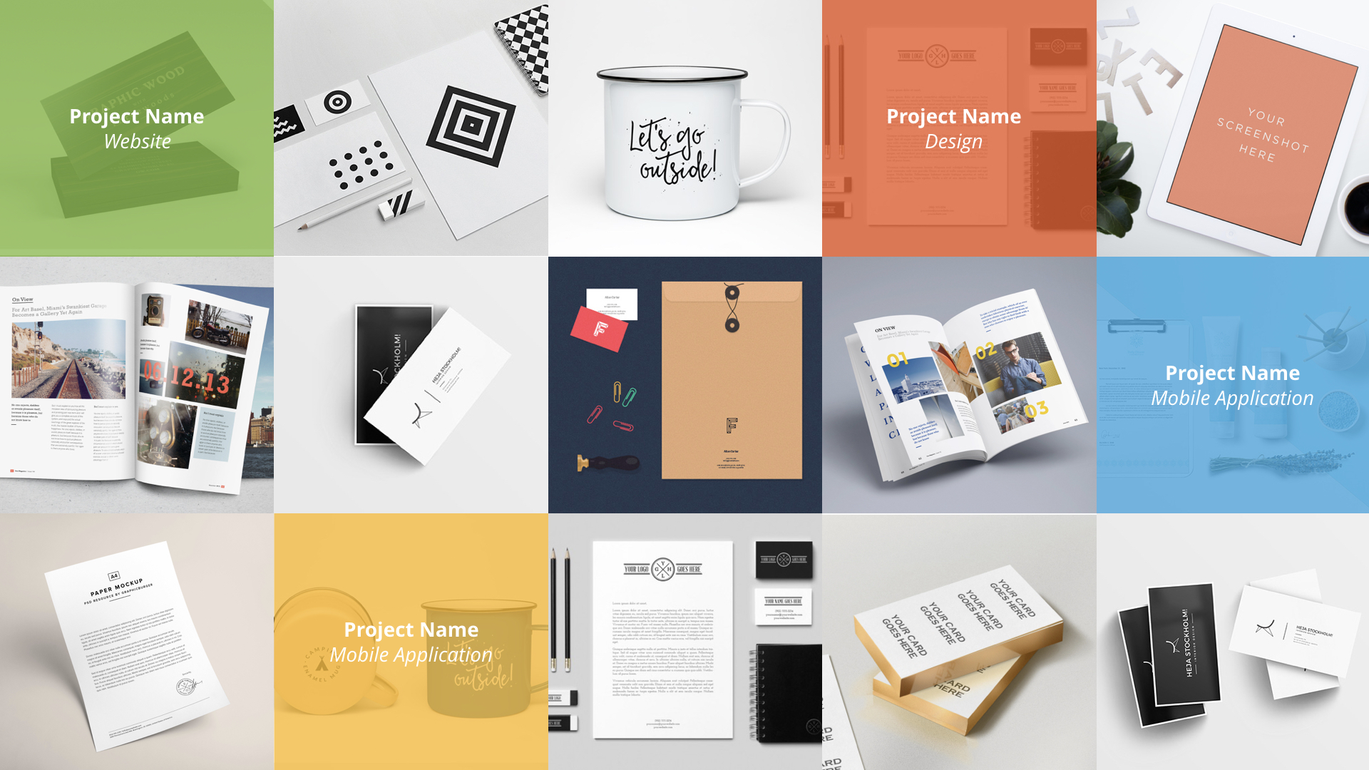 - Laptop, tablet and mobile mockups.
