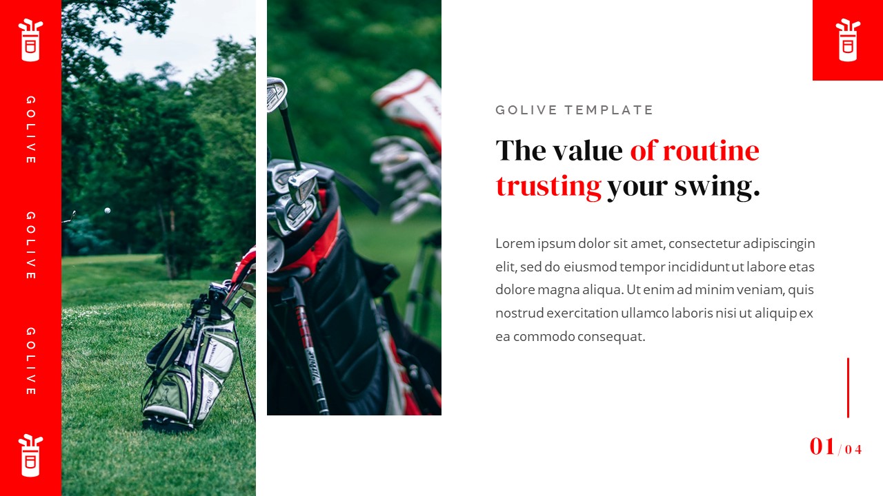 Golive – Golf Clubs Keynote Template has a professional, ultra-modern and unique design, where each slide is created with love and attention to detail. Golive – Golf Clubs Keynote Template is a Creative Keynote template that can be used for any type of presentation: business, portfolio, corporate, branding, advertising etc.Presentation Features