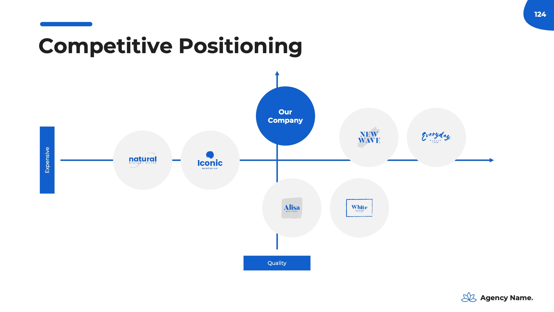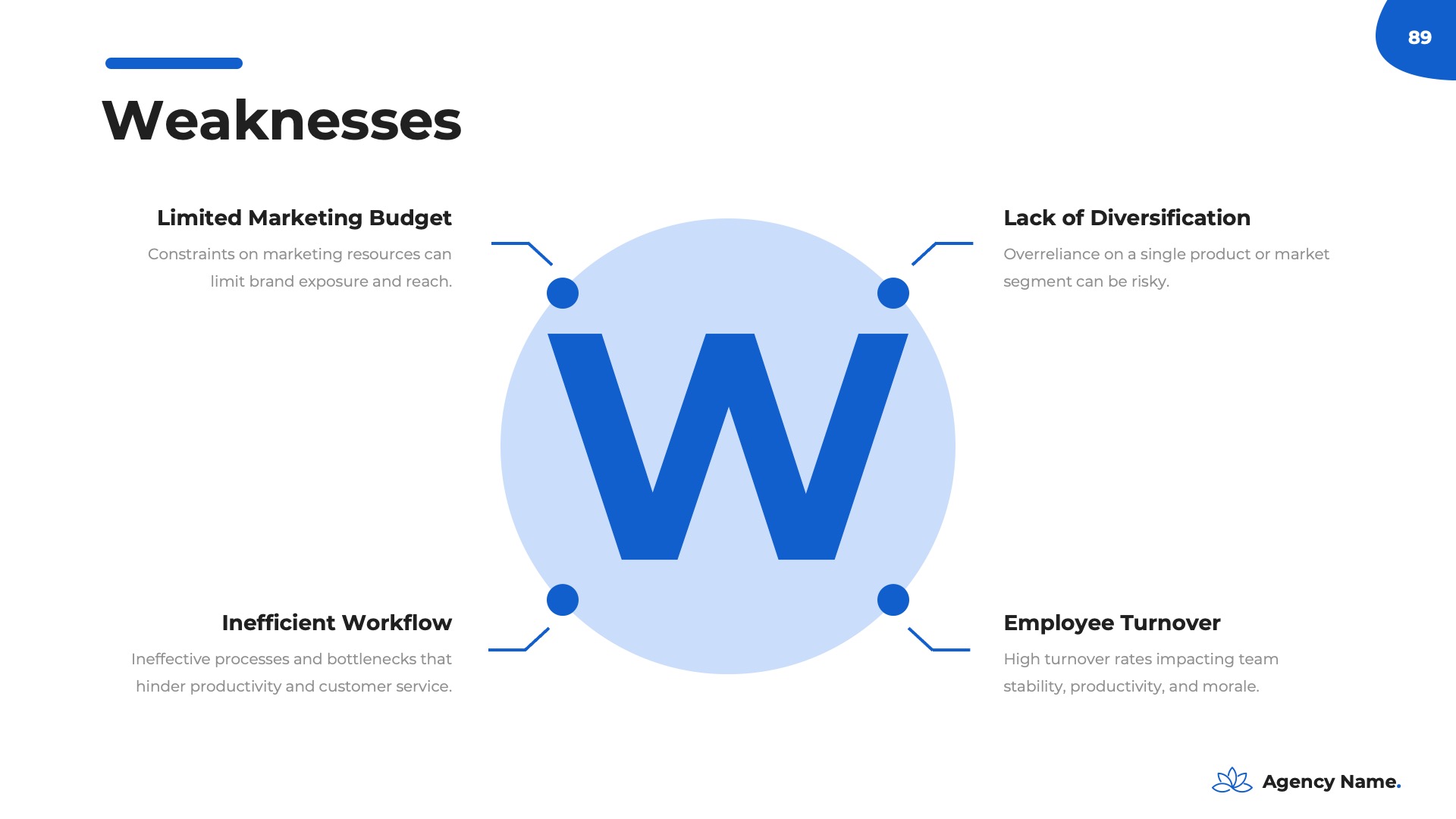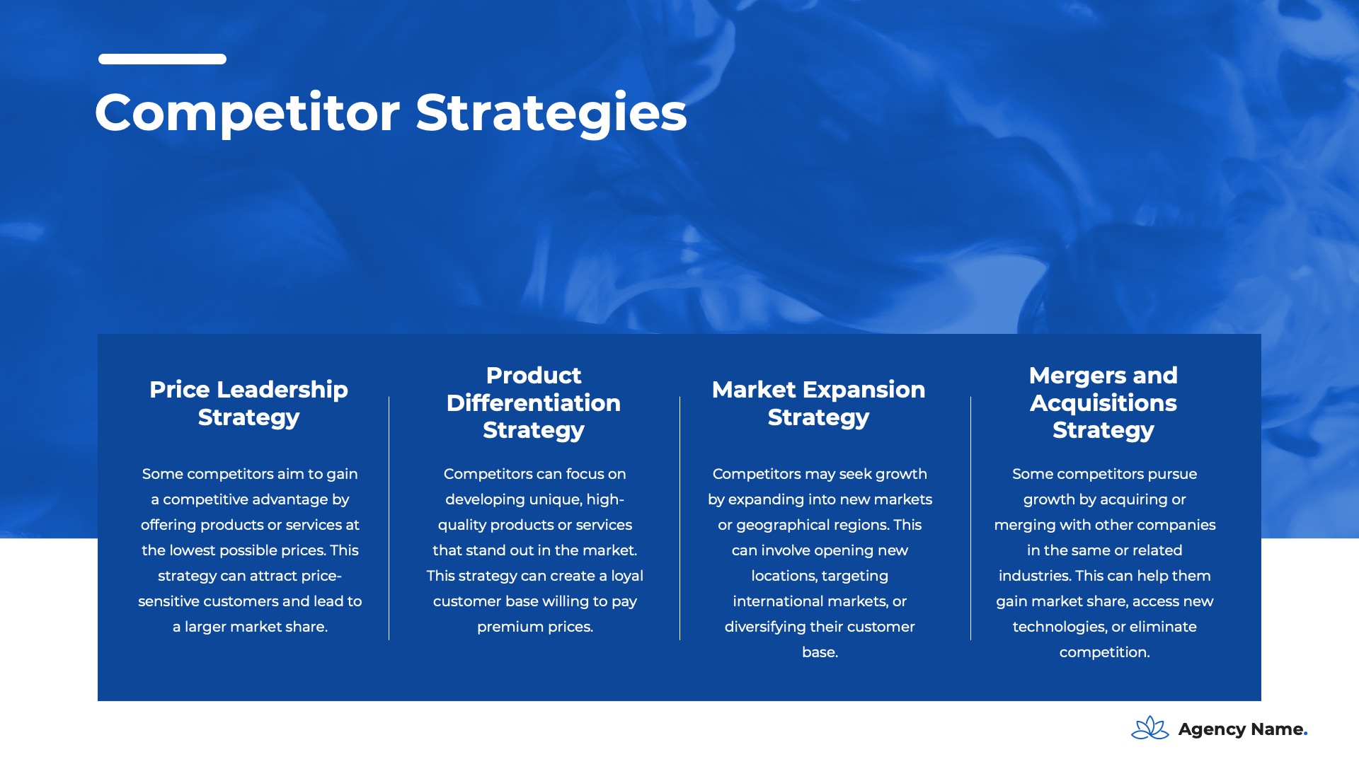 The ‘Company Overview’ is your presentation’s foundation, offering a thorough introduction to your business and leaving a positive first impression. This section is essential for familiarizing your audience with your company’s values and achievements, setting the stage for the rest of your marketing plan. Within this section, you’ll encounter the following slides:- Logo And Company Name
