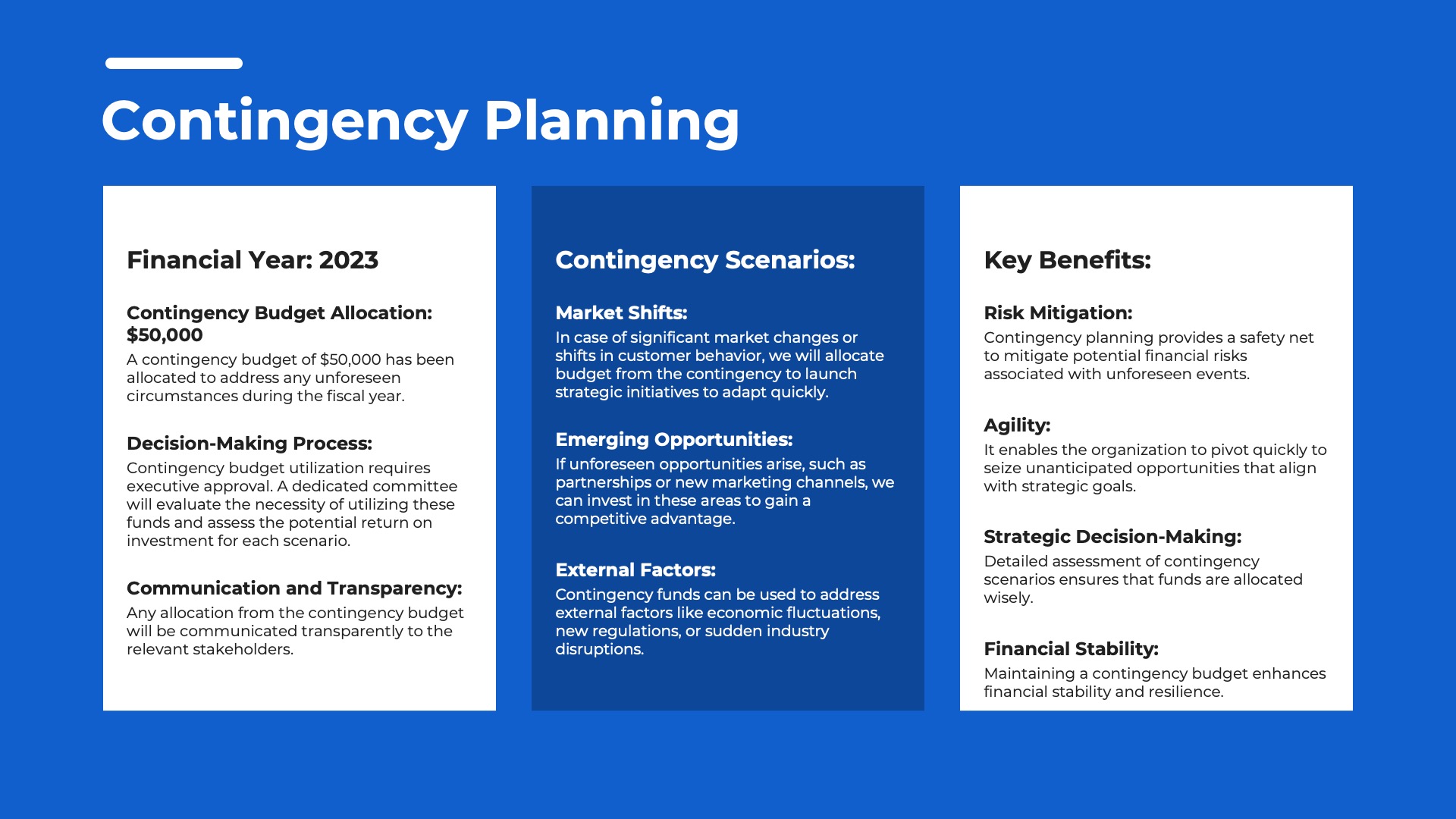 - Contingency Planning