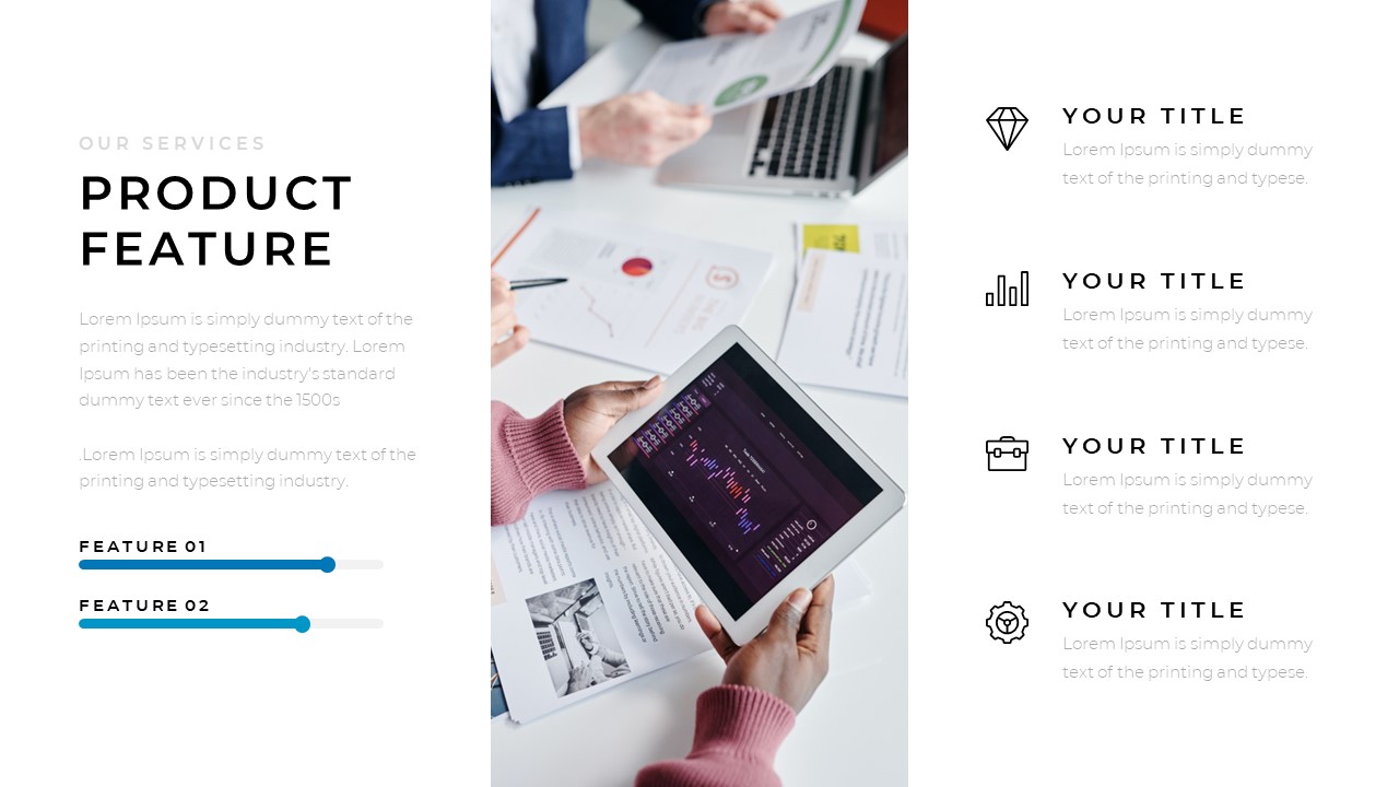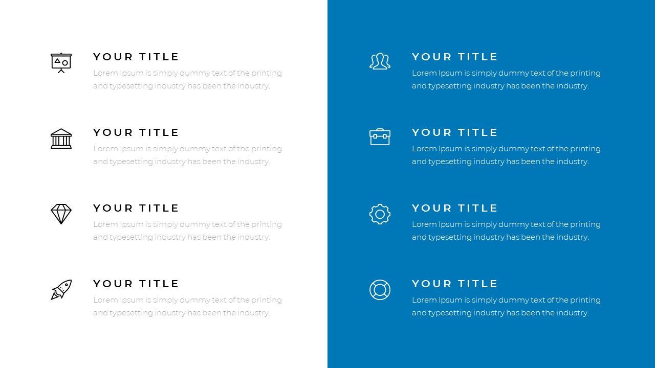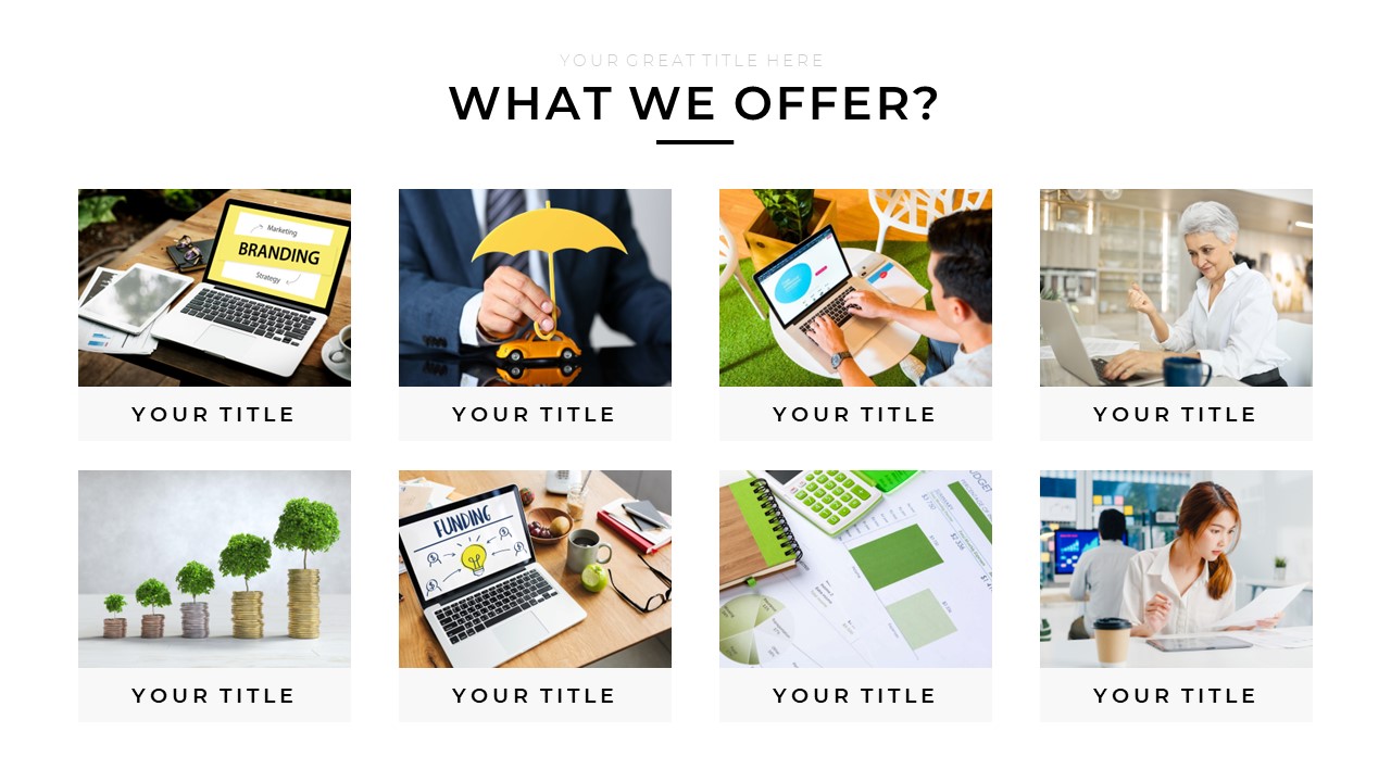 We focused on the real use, each slide is proven useful in real-world presentations. It’s got all the necessary sections and slides needed to create a professional presentation.