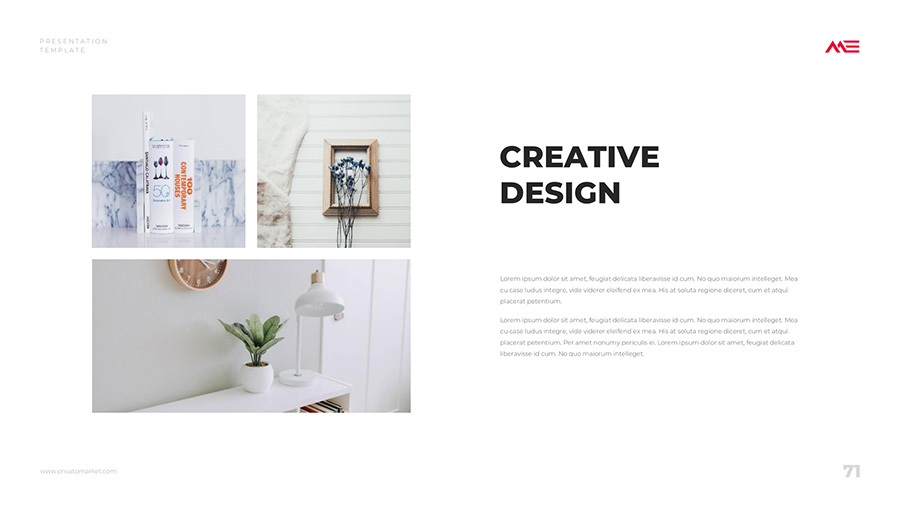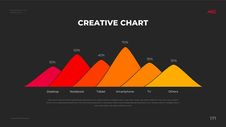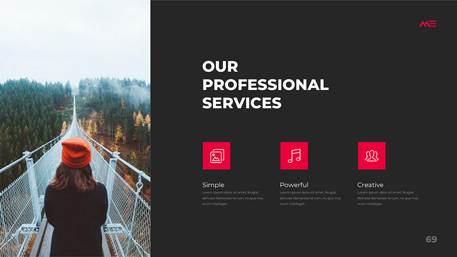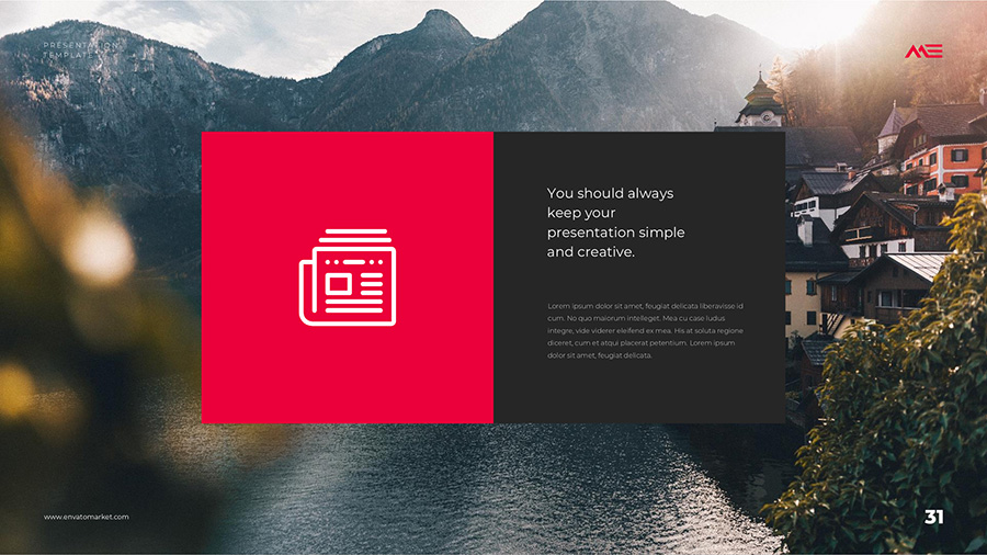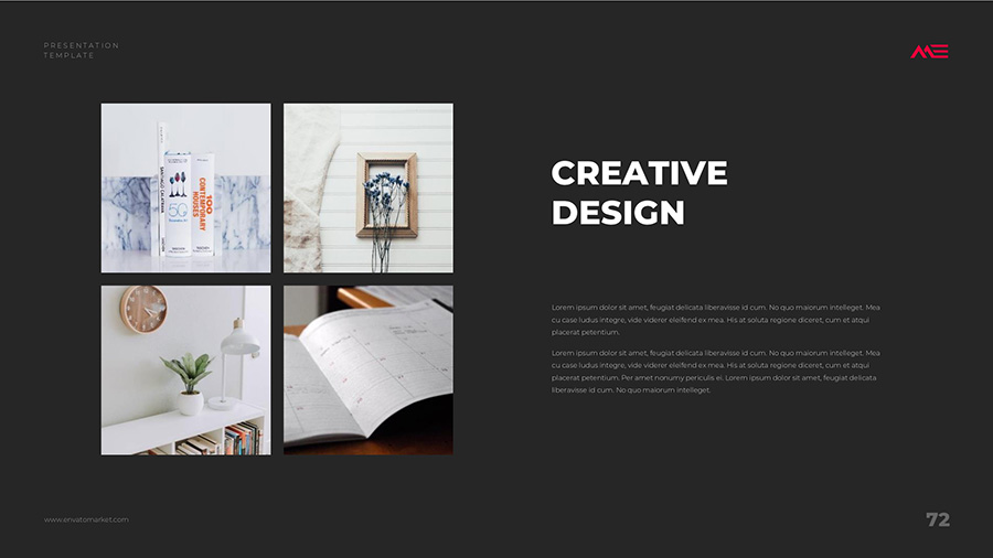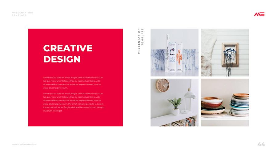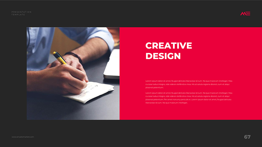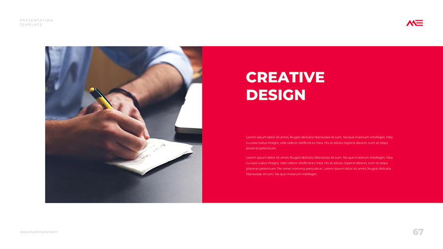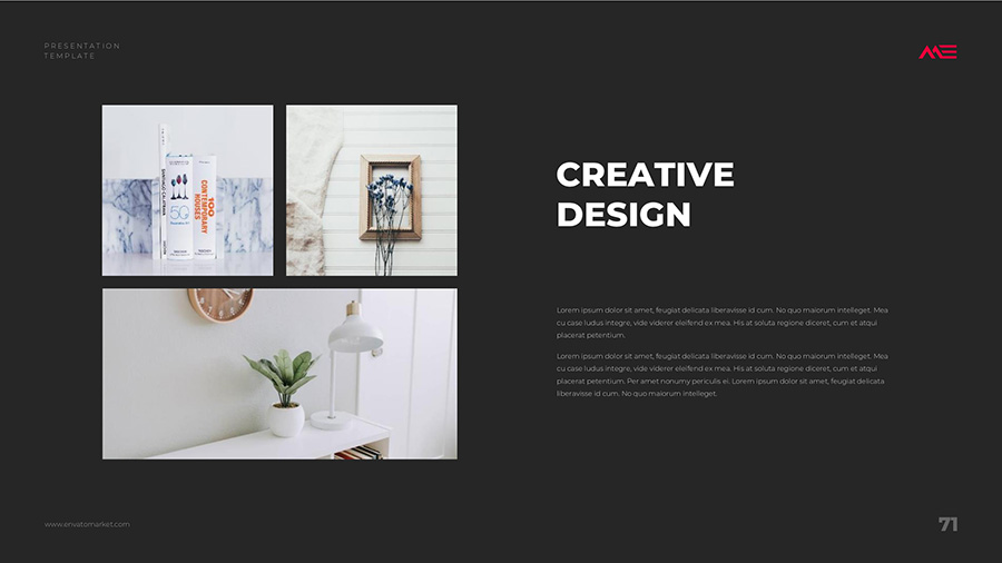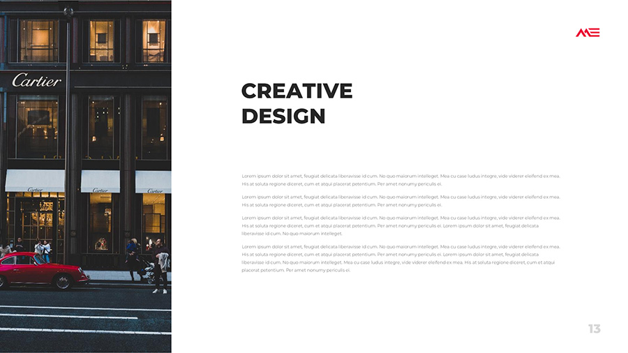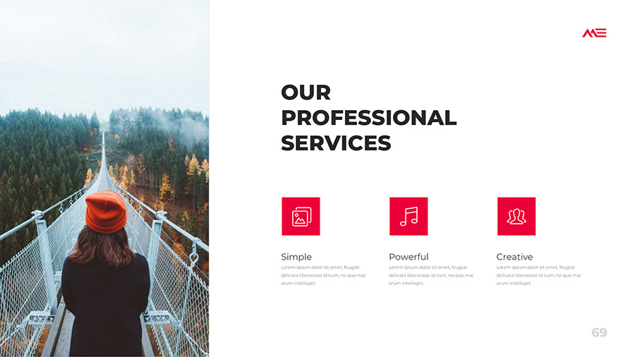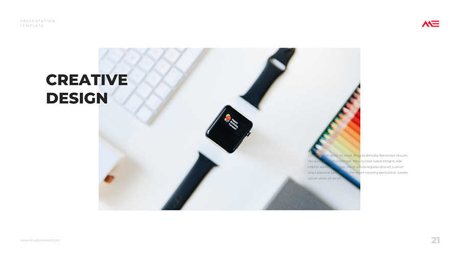 We design professional and creative presentation templates for helping you make presentations easier and faster. Every details in this template are well-designed.