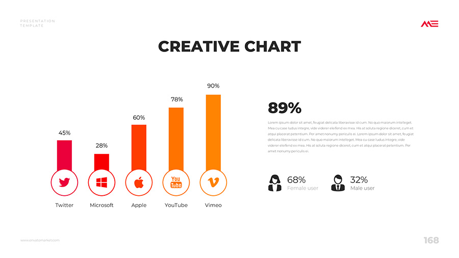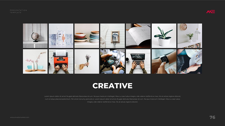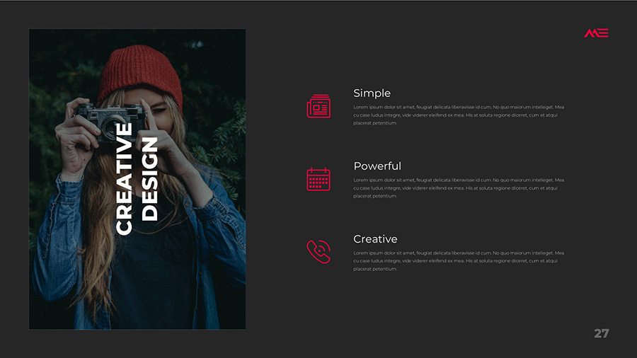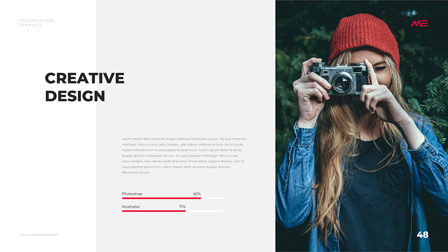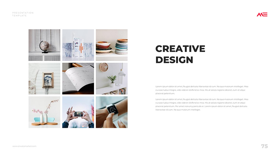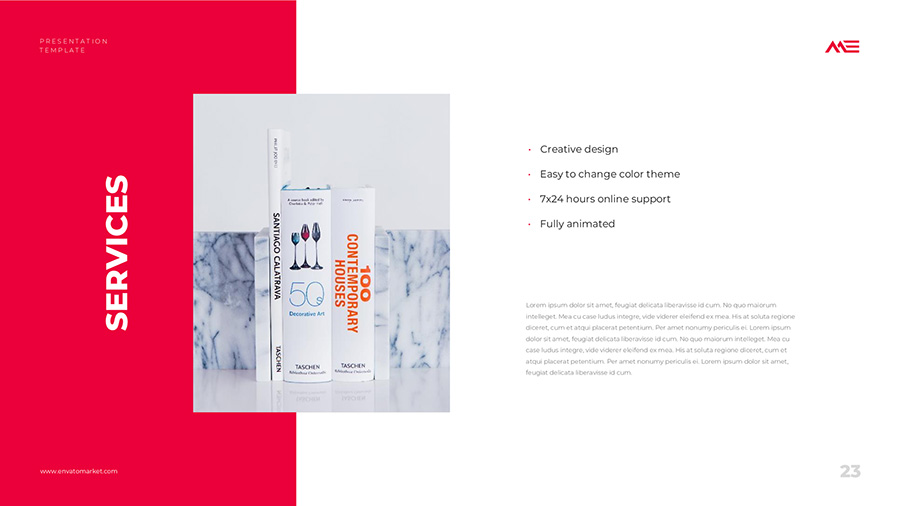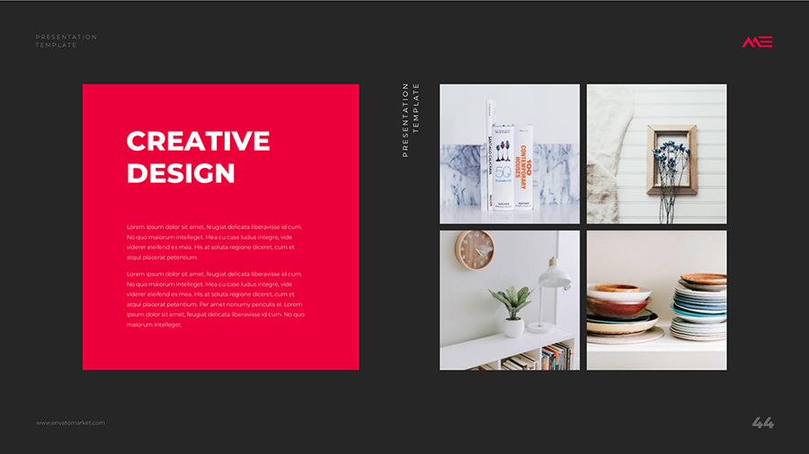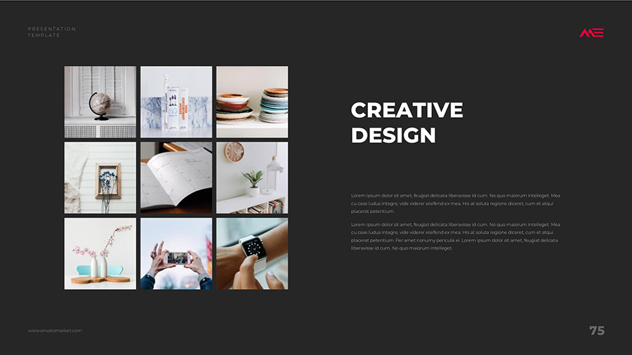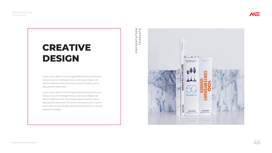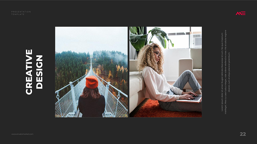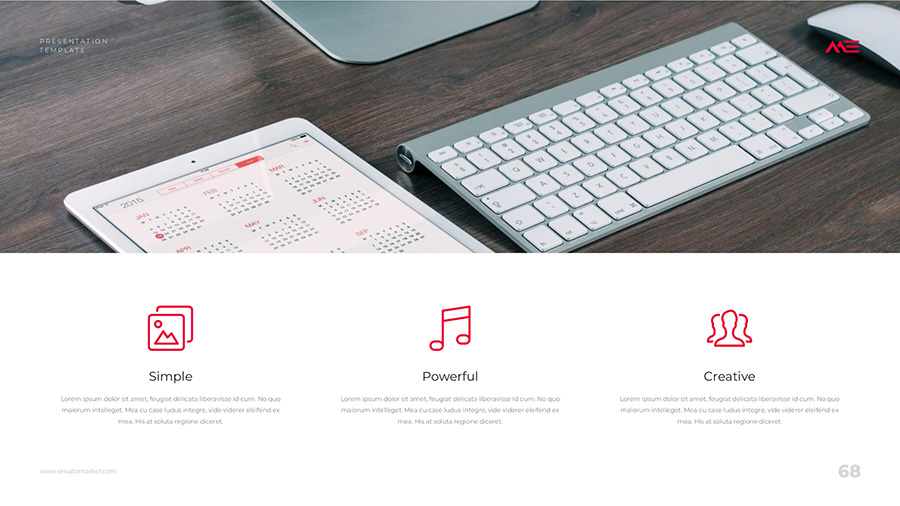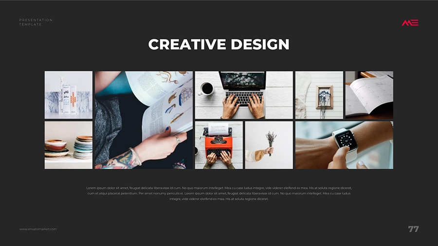 We design professional and creative presentation templates for helping you make presentations easier and faster. Every details in this template are well-designed.