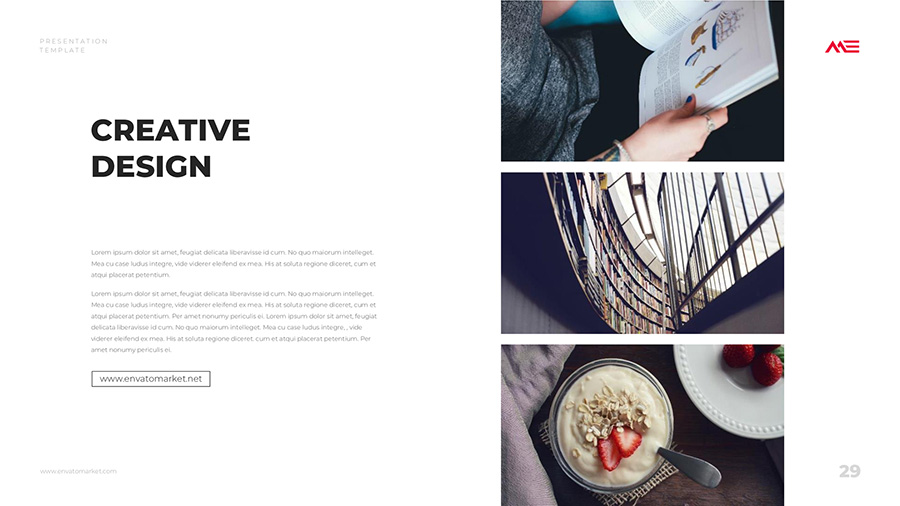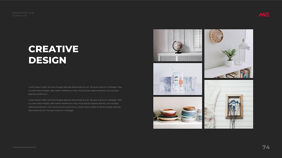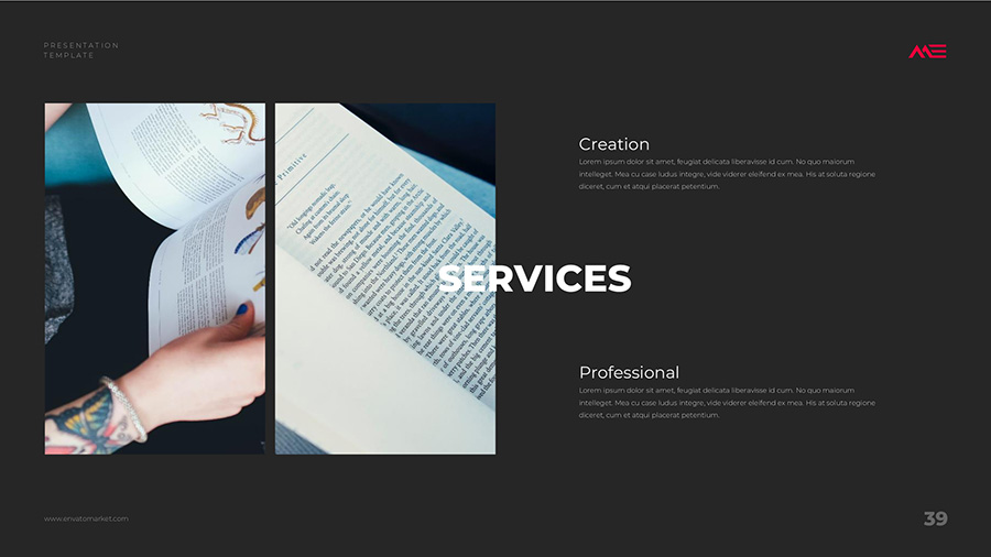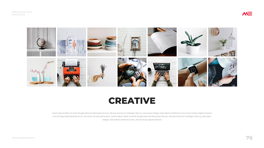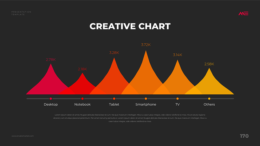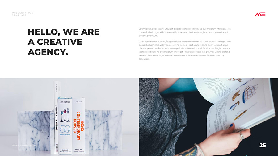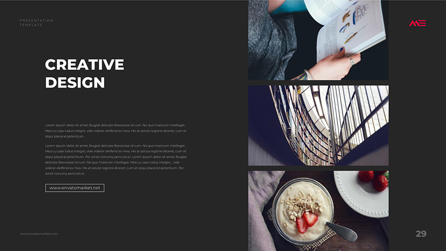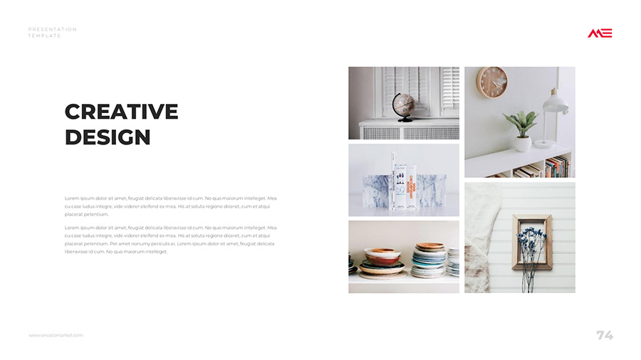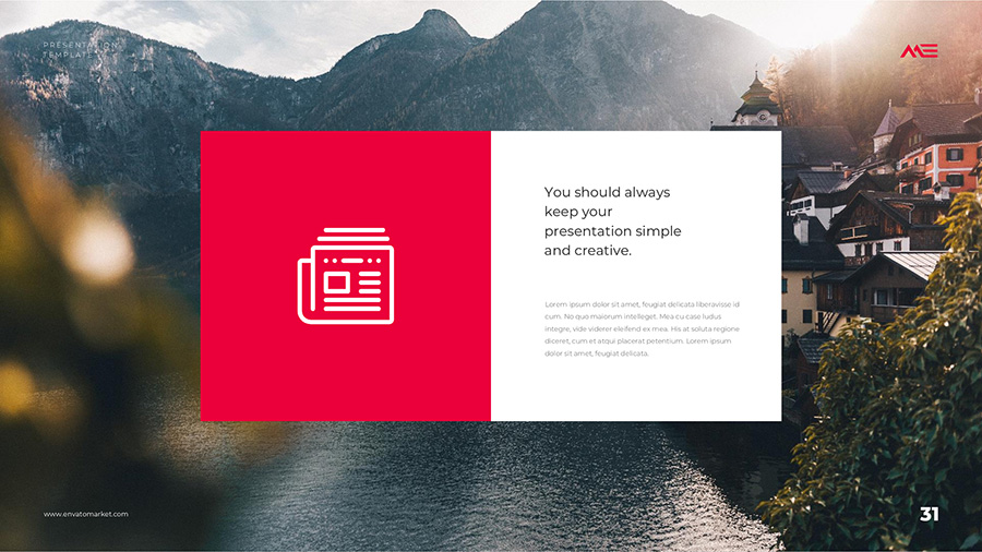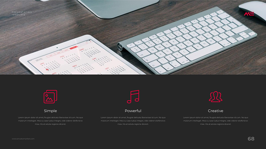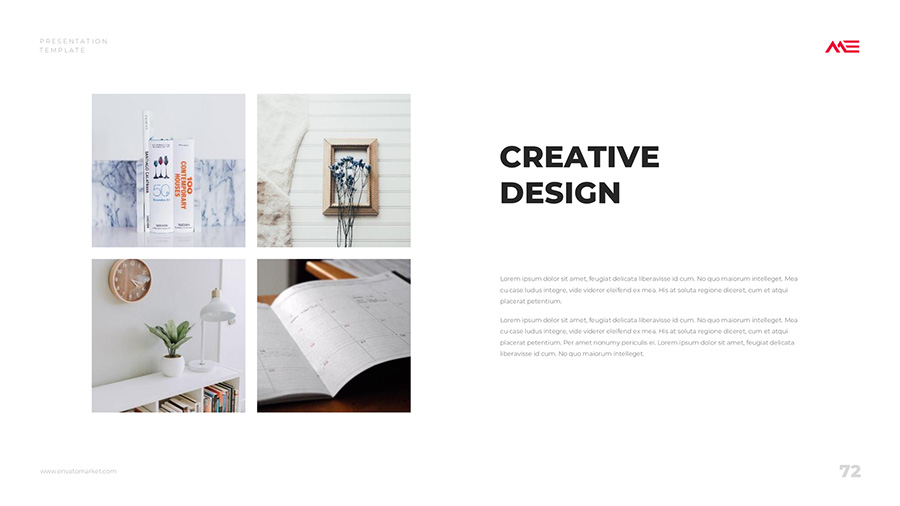 We design professional and creative presentation templates for helping you make presentations easier and faster. Every details in this template are well-designed.