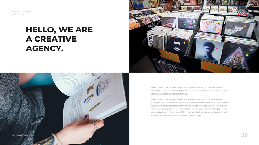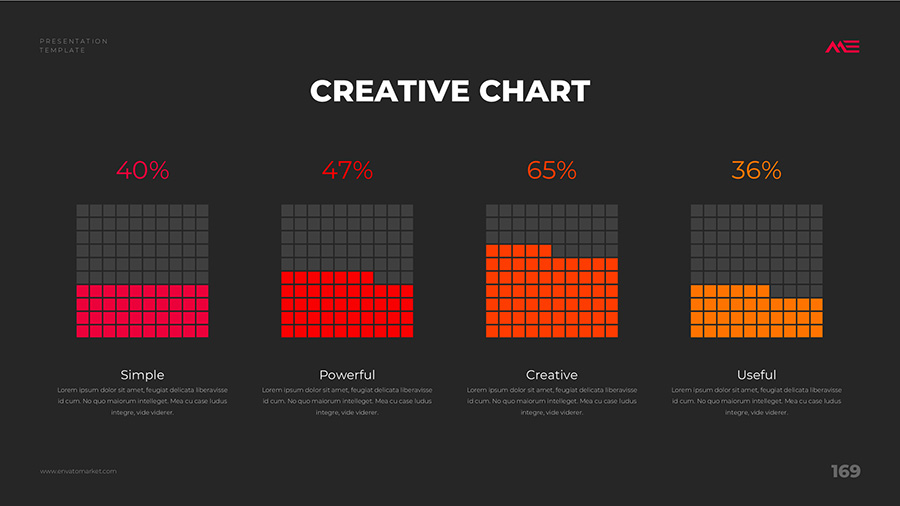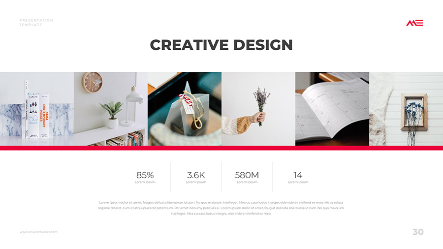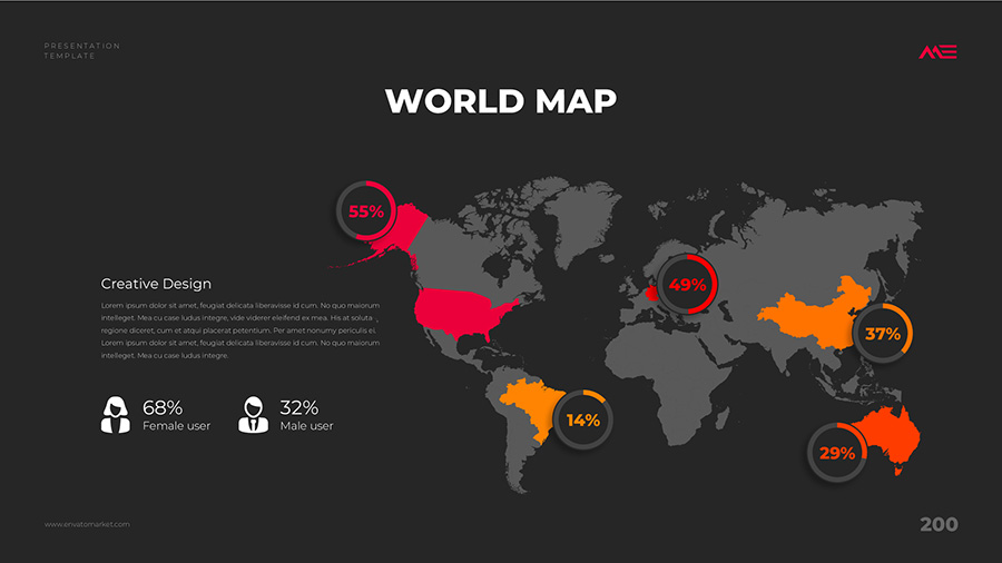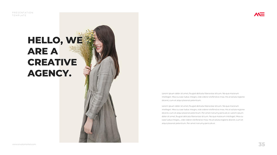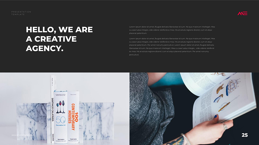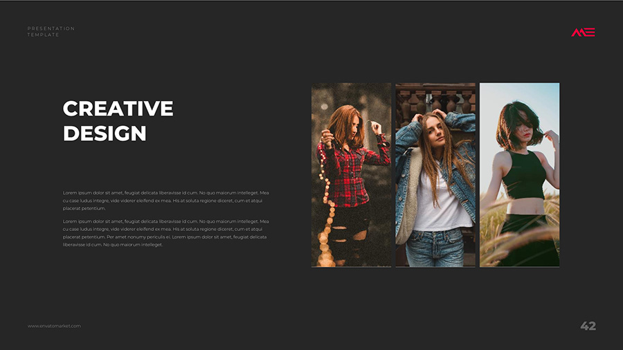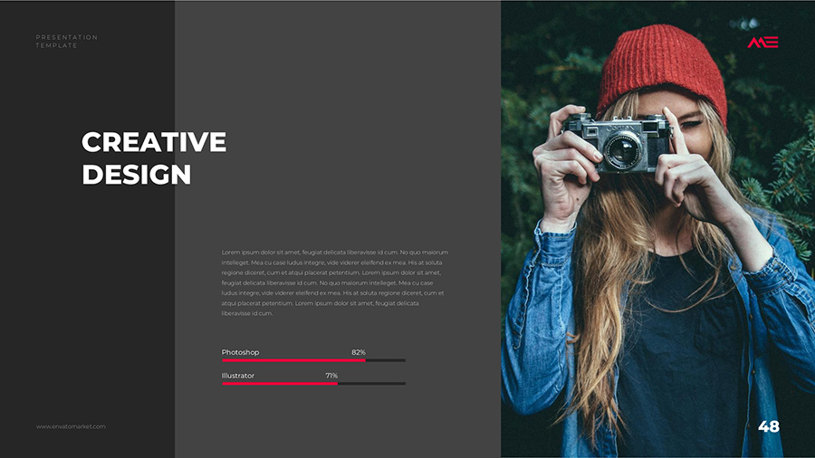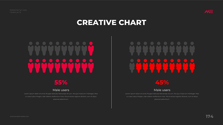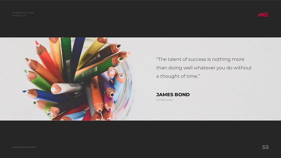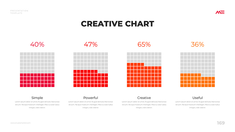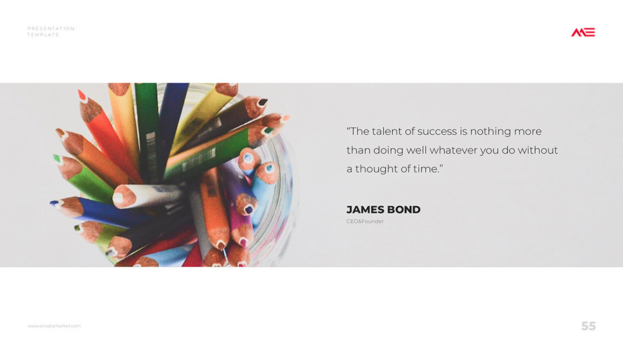 We design professional and creative presentation templates for helping you make presentations easier and faster. Every details in this template are well-designed.