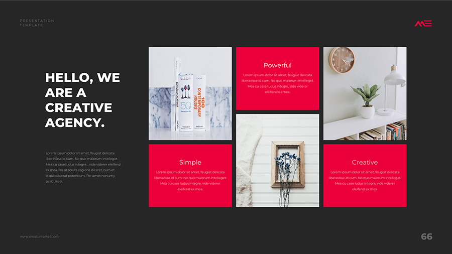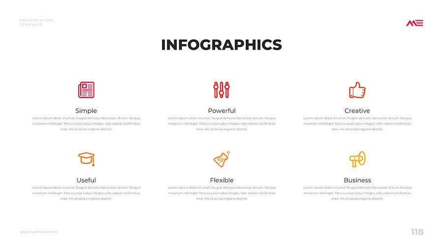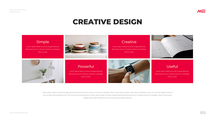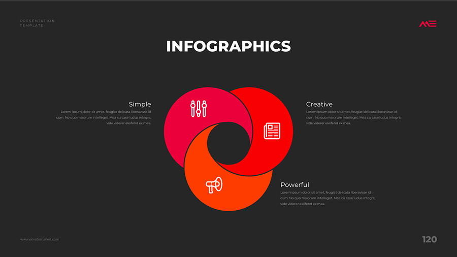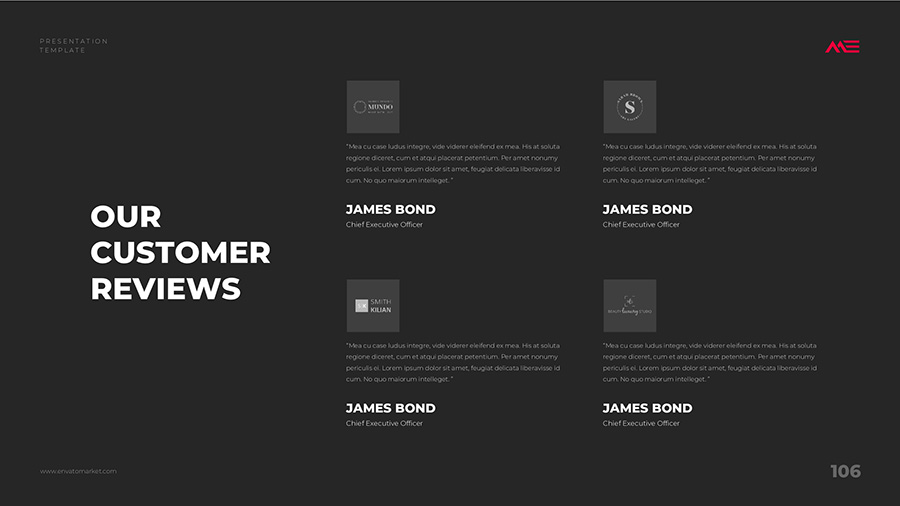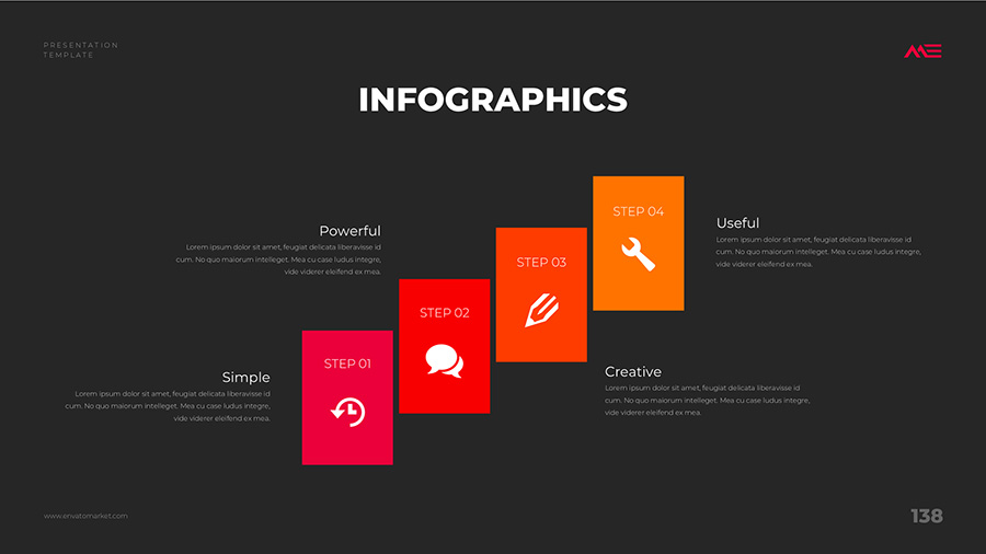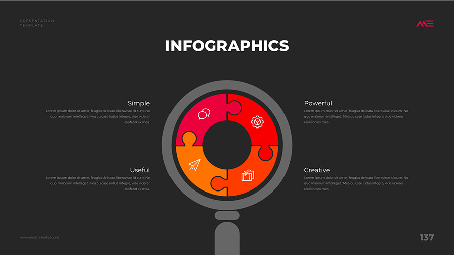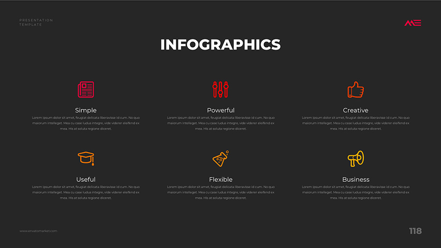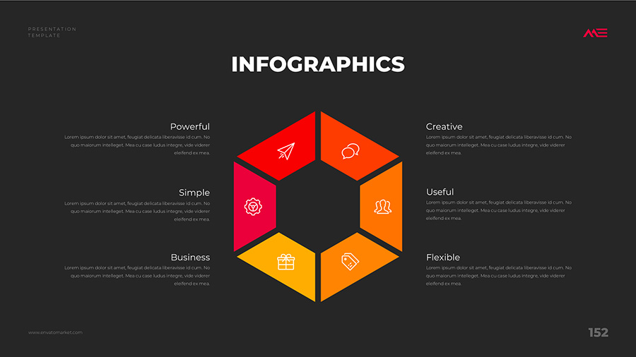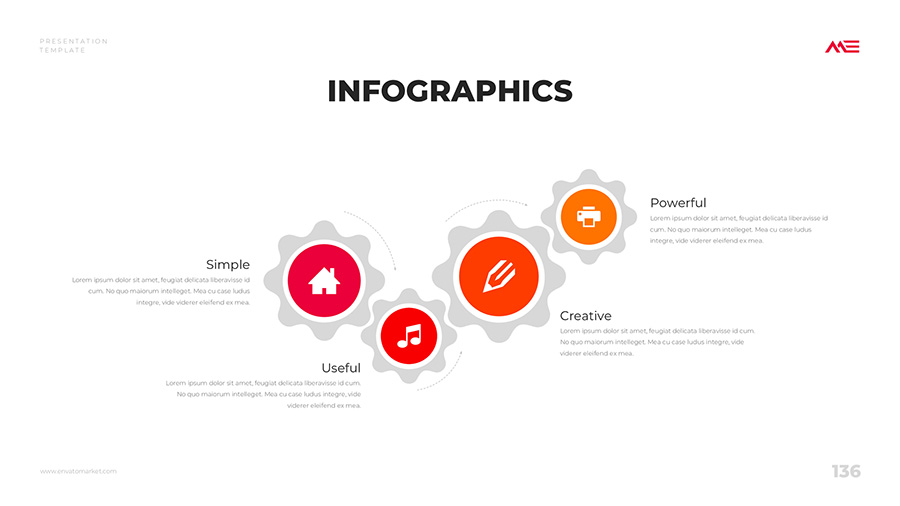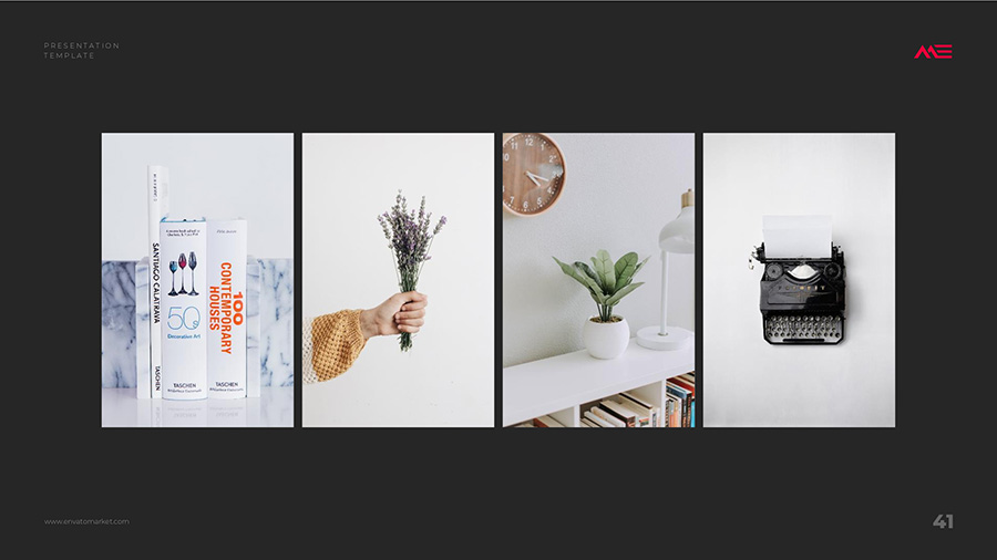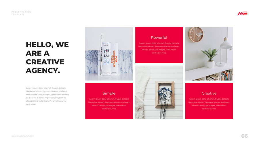 We design professional and creative presentation templates for helping you make presentations easier and faster. Every details in this template are well-designed.