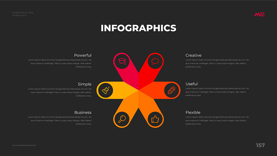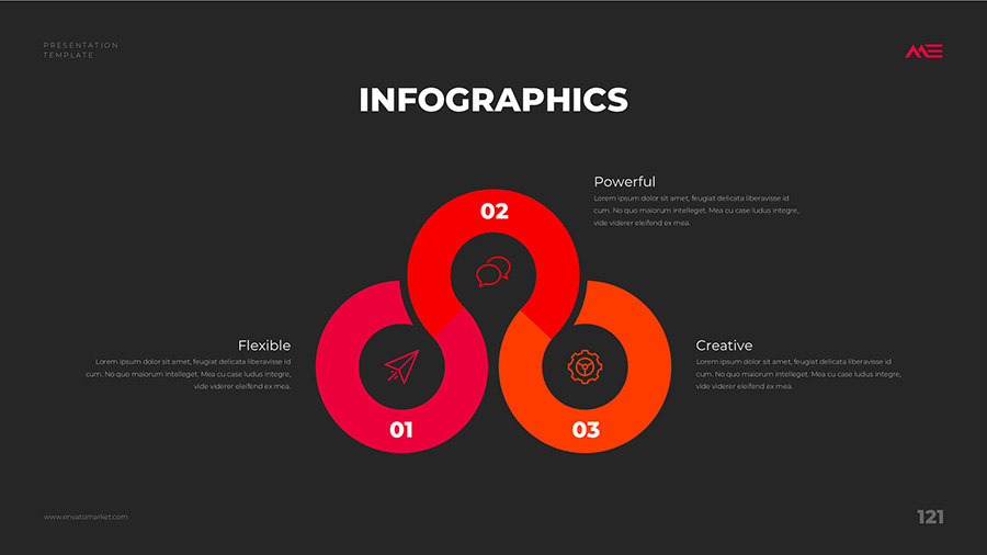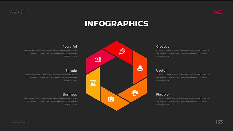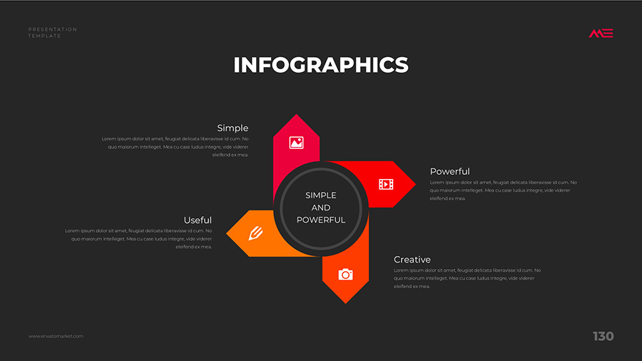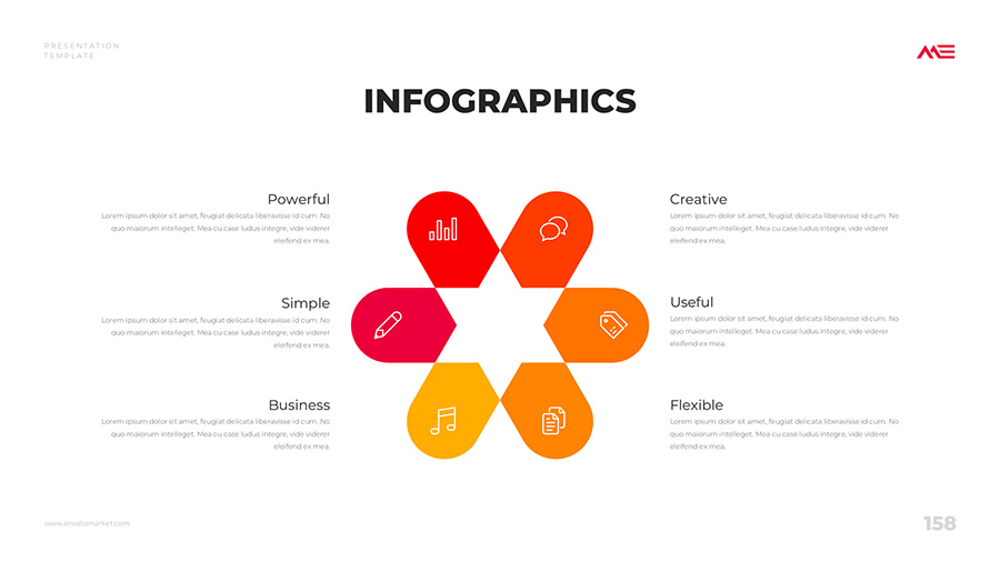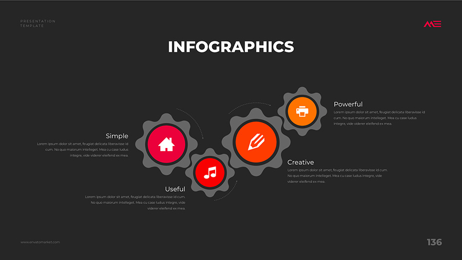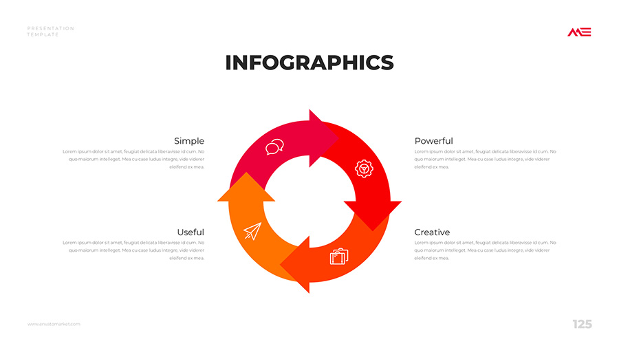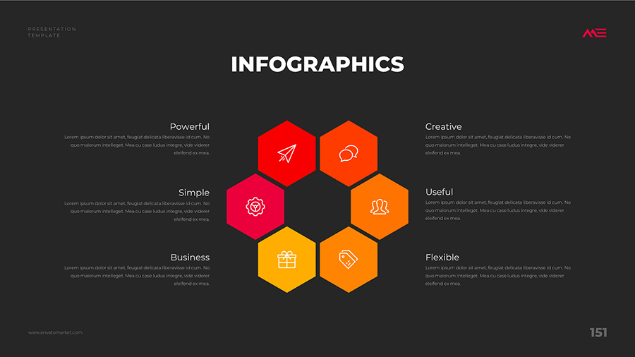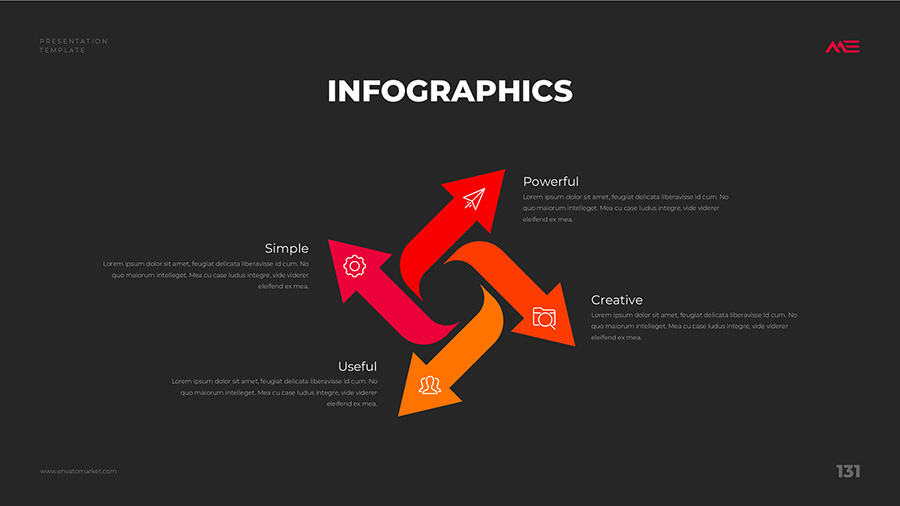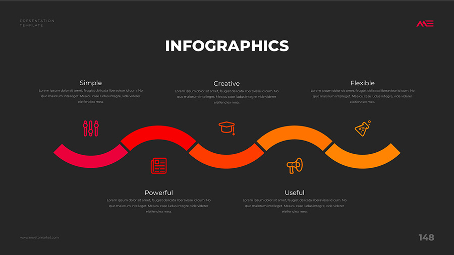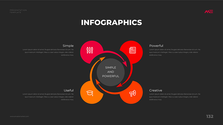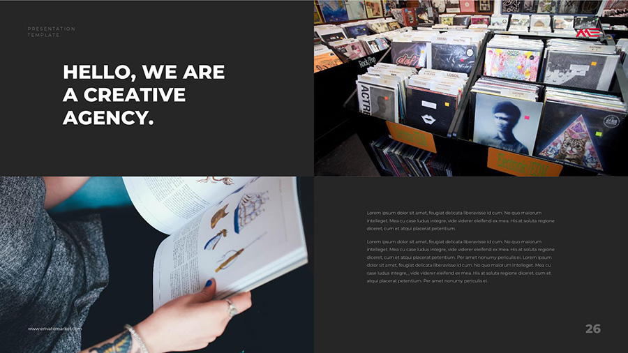 We design professional and creative presentation templates for helping you make presentations easier and faster. Every details in this template are well-designed.