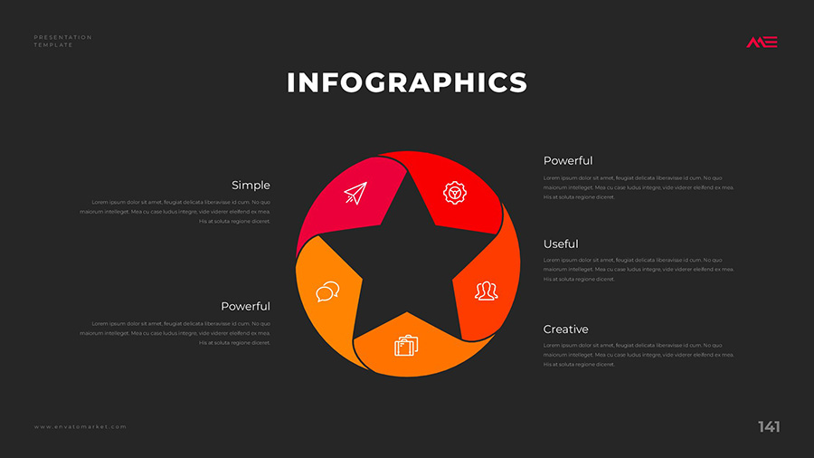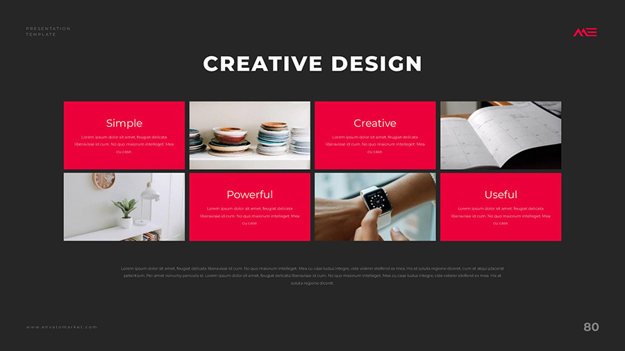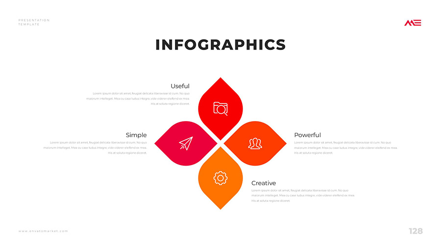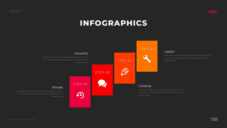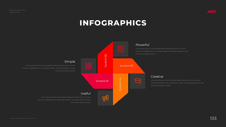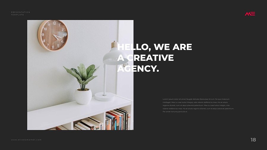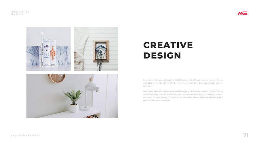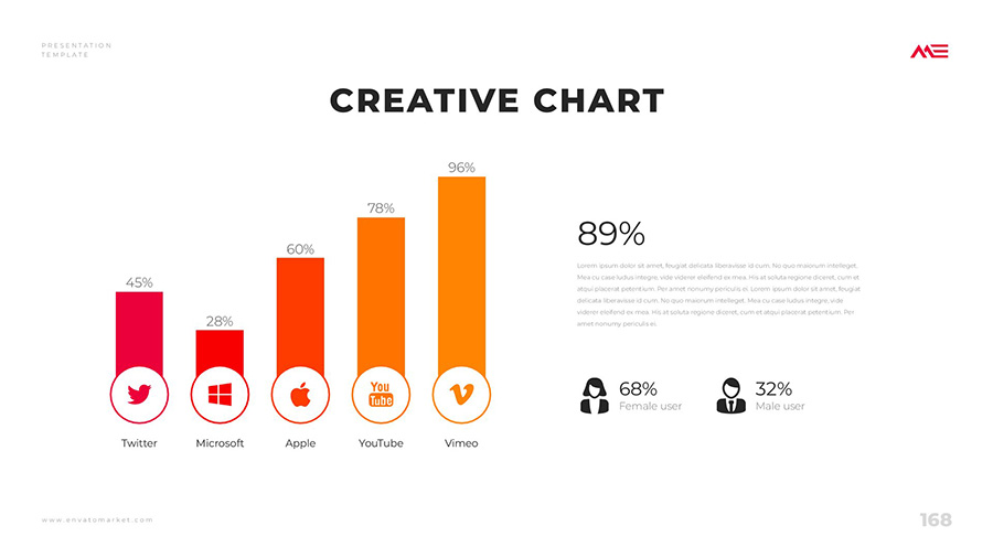 We design professional and creative presentation templates for helping you make presentations easier and faster. Every details in this template are well-designed.