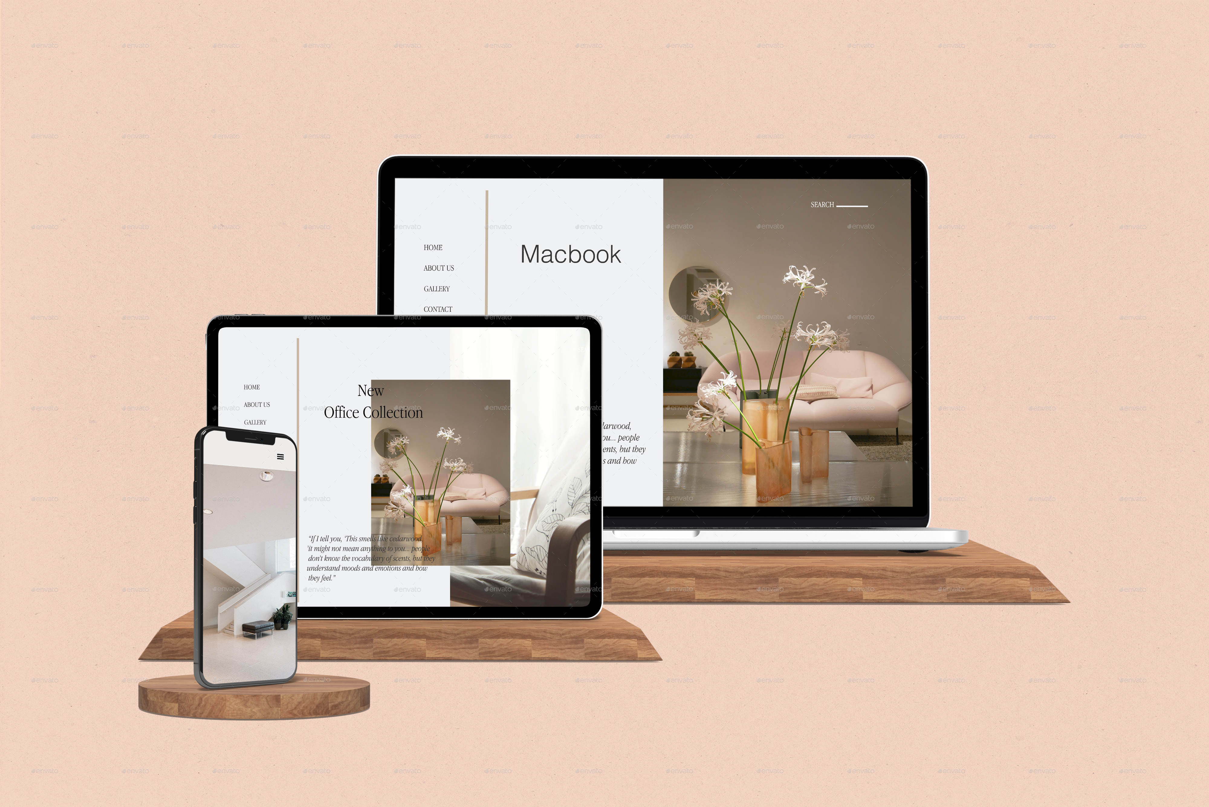 This item consist of 12 different styles Multi Devices Responsive Website Mockup your web design in realistic appearances. These mock-up files uses smart object feature which help you change the design just in seconds (PDF instruction included). Contact me if you need help.!