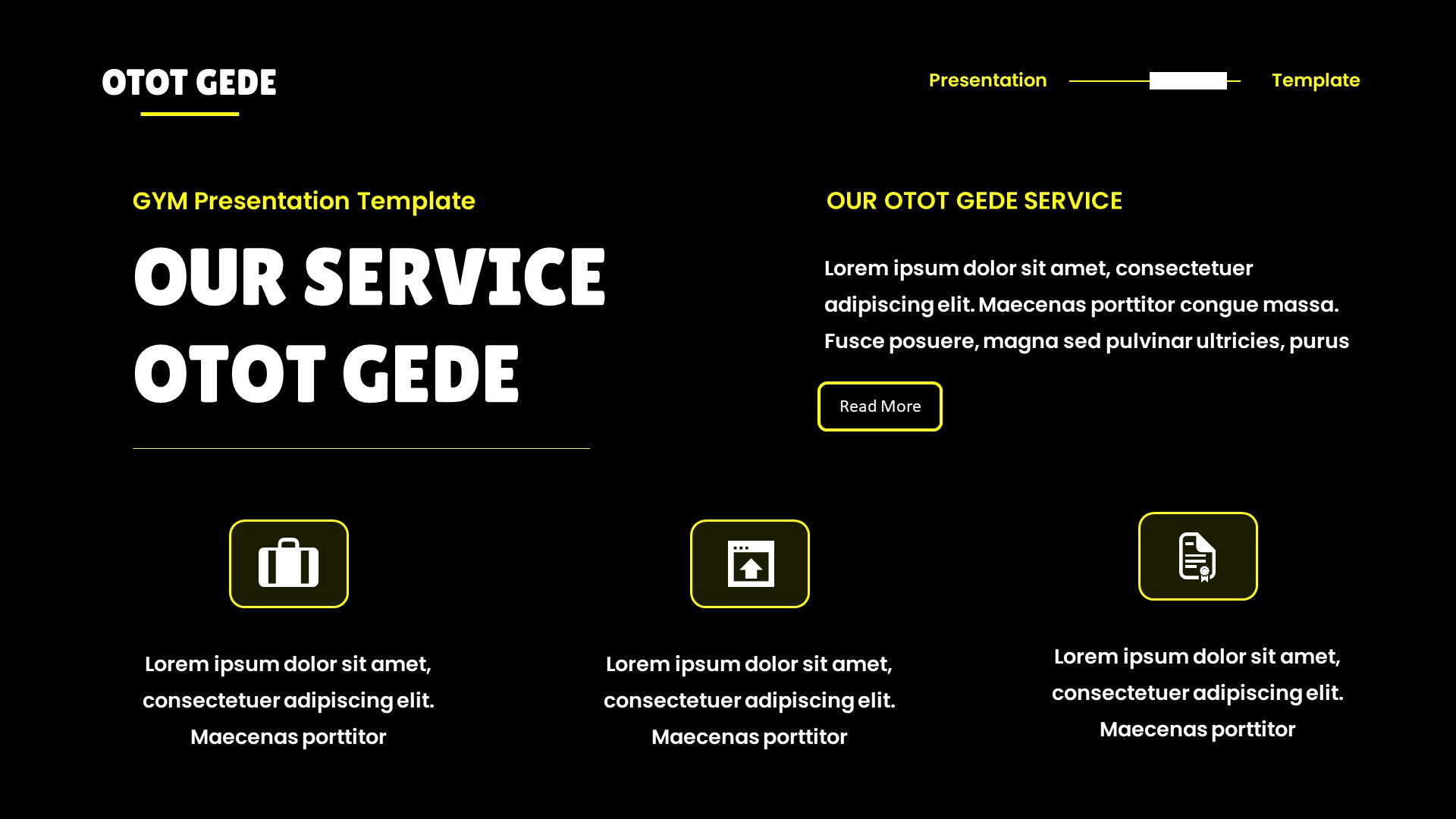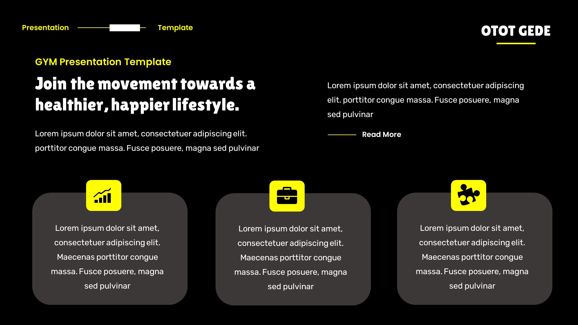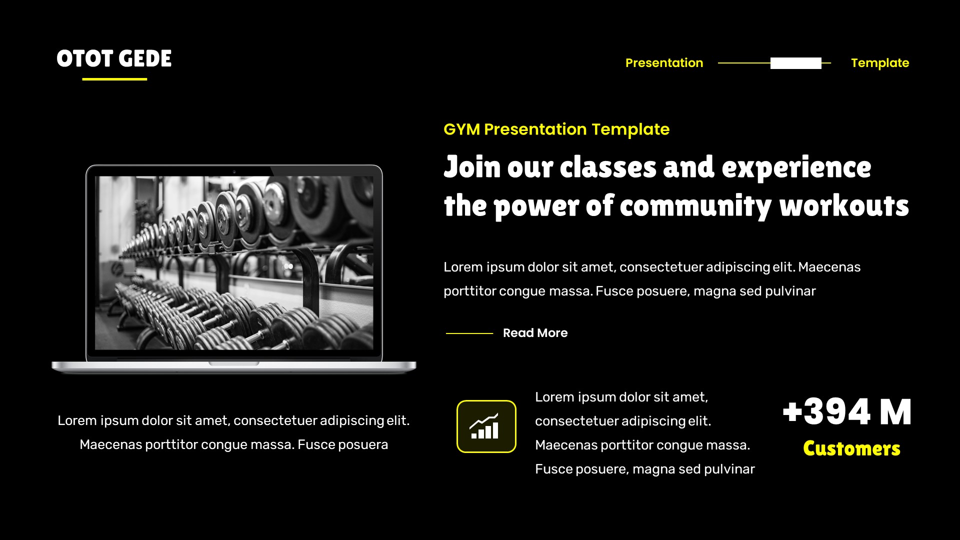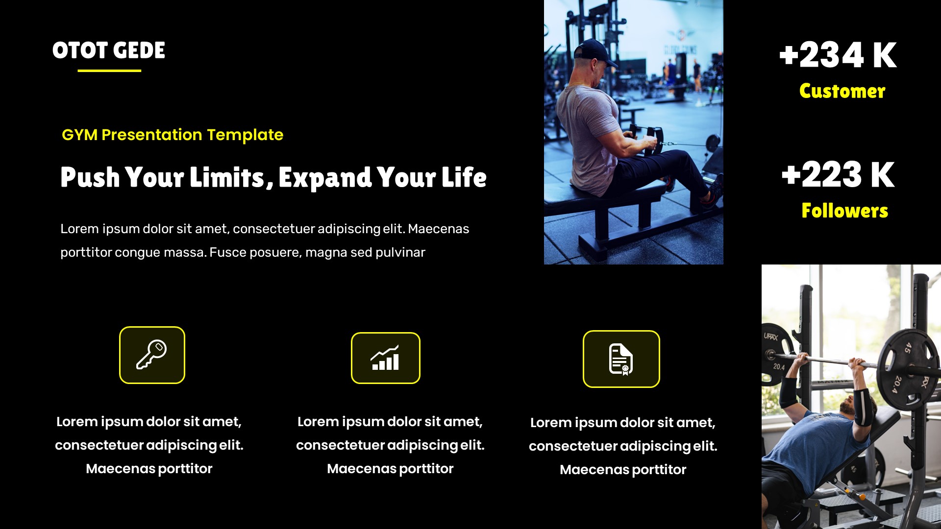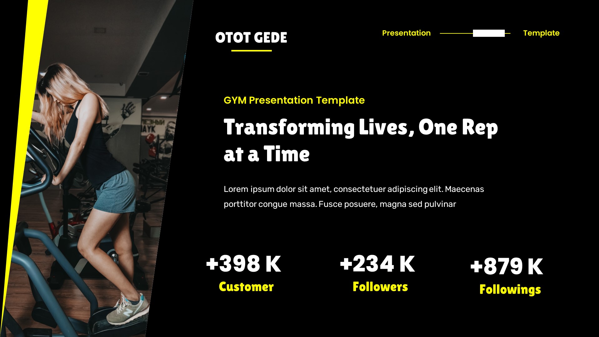 Otot Gede – Gym & Fitness Google Slides Template has a professional, ultra-modern and unique design, where each slide is created with love and attention to detail. Otot Gede – Gym & Fitness Google Slides Template is a Creative Google Slides template that can be used for any type of presentation: business, portfolio, corporate, branding, advertising etc.Presentation Features