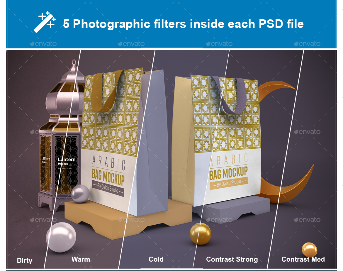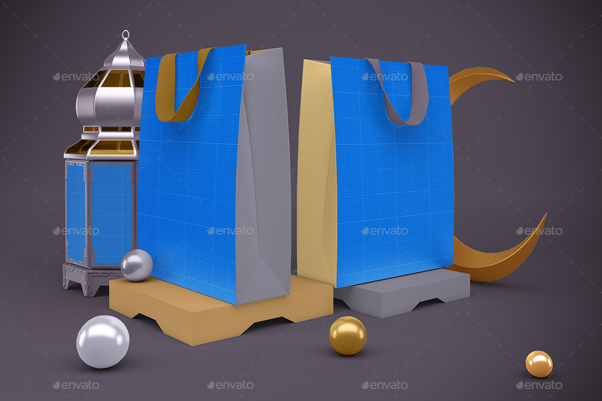 Ramadan Bag V.1 Mockup is a mockup that can present a bag in a Ramadan-themed background from different angles that you can use for your design, suitable for brands, and consists of separate layer sets. A help file is included.