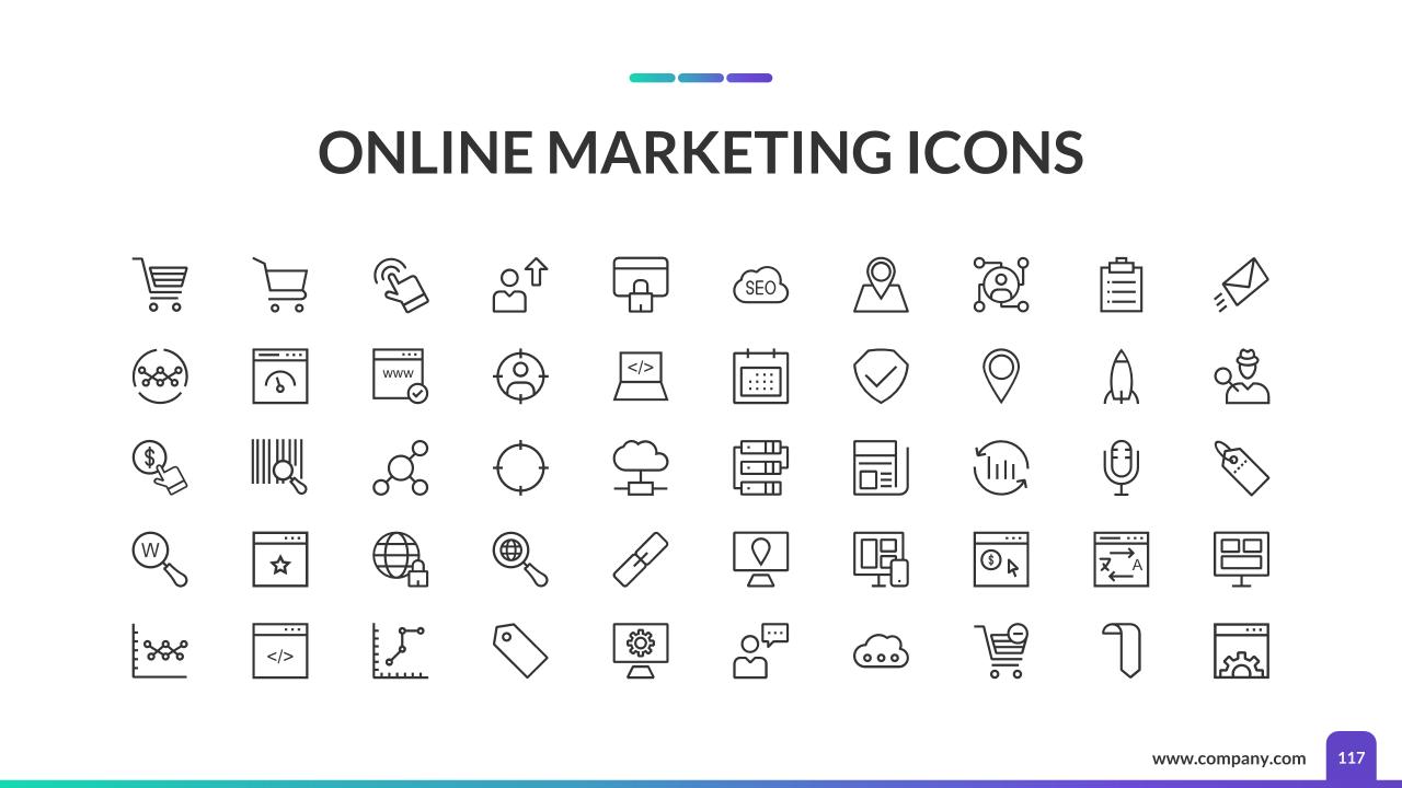 This template has a modern and clean design, 3 Color schemes each one with two backgrounds (dark and light), 2 aspect ratios and more than 110 useful SEO slides, with amazing features that will help you tell your company story easily!