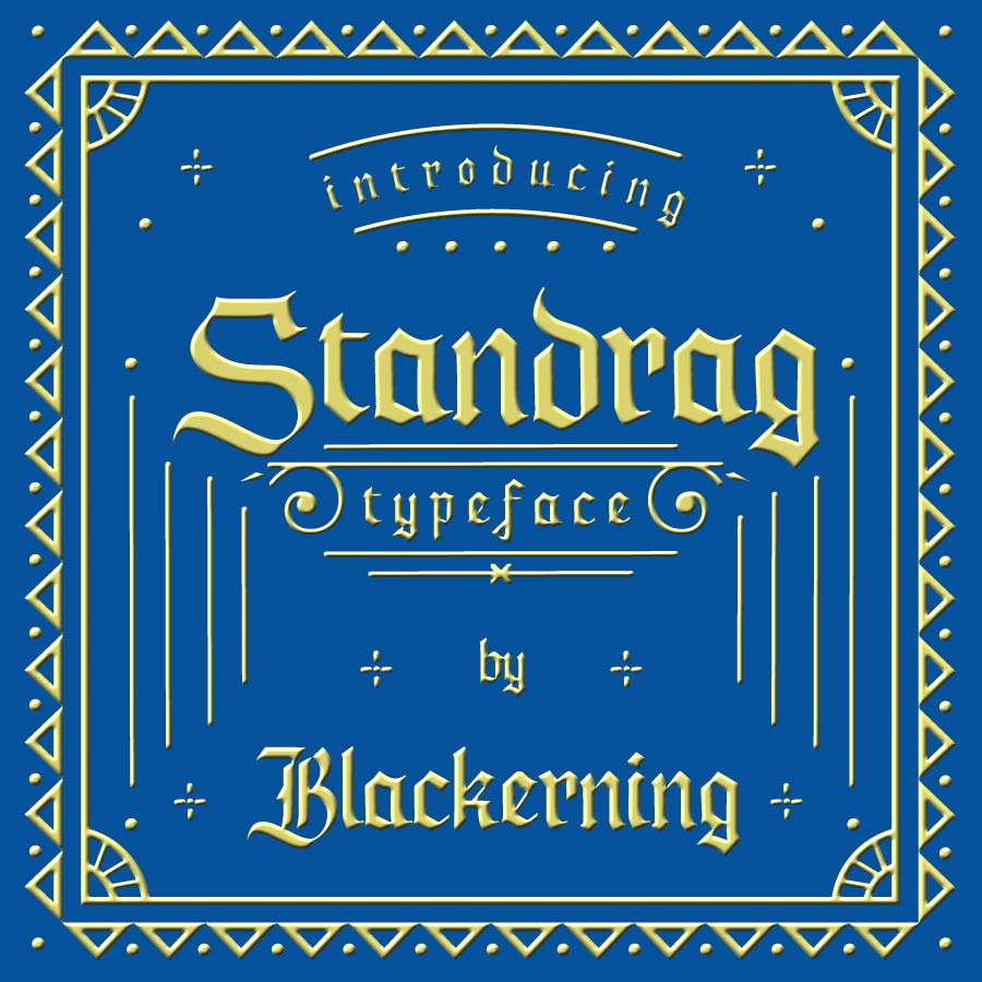 Standrag is a rough blackletter type. It has vintage / classic vibes and inspired by the old letters that are used in classic advertisements. Standrag suits best for simple quotes, poster, vintage design and classic labels.