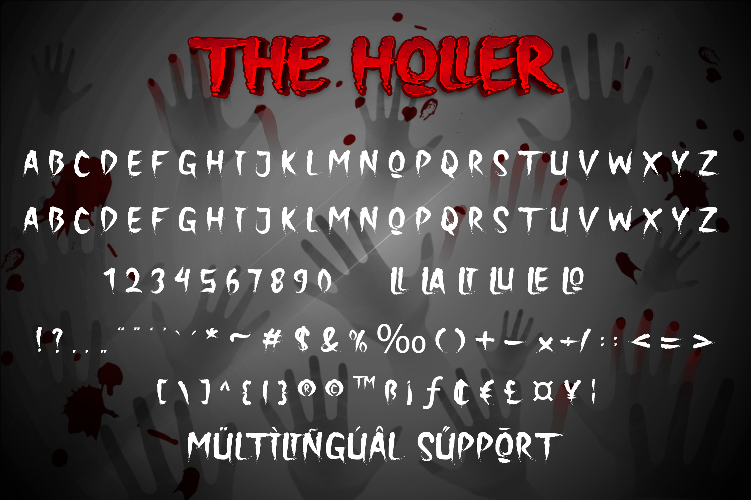 Introducing The Holler Font with a scary halloween theme. Masterfully designed to become a true favorite, this font has the potential to bring each of your creative ideas to the highest level.