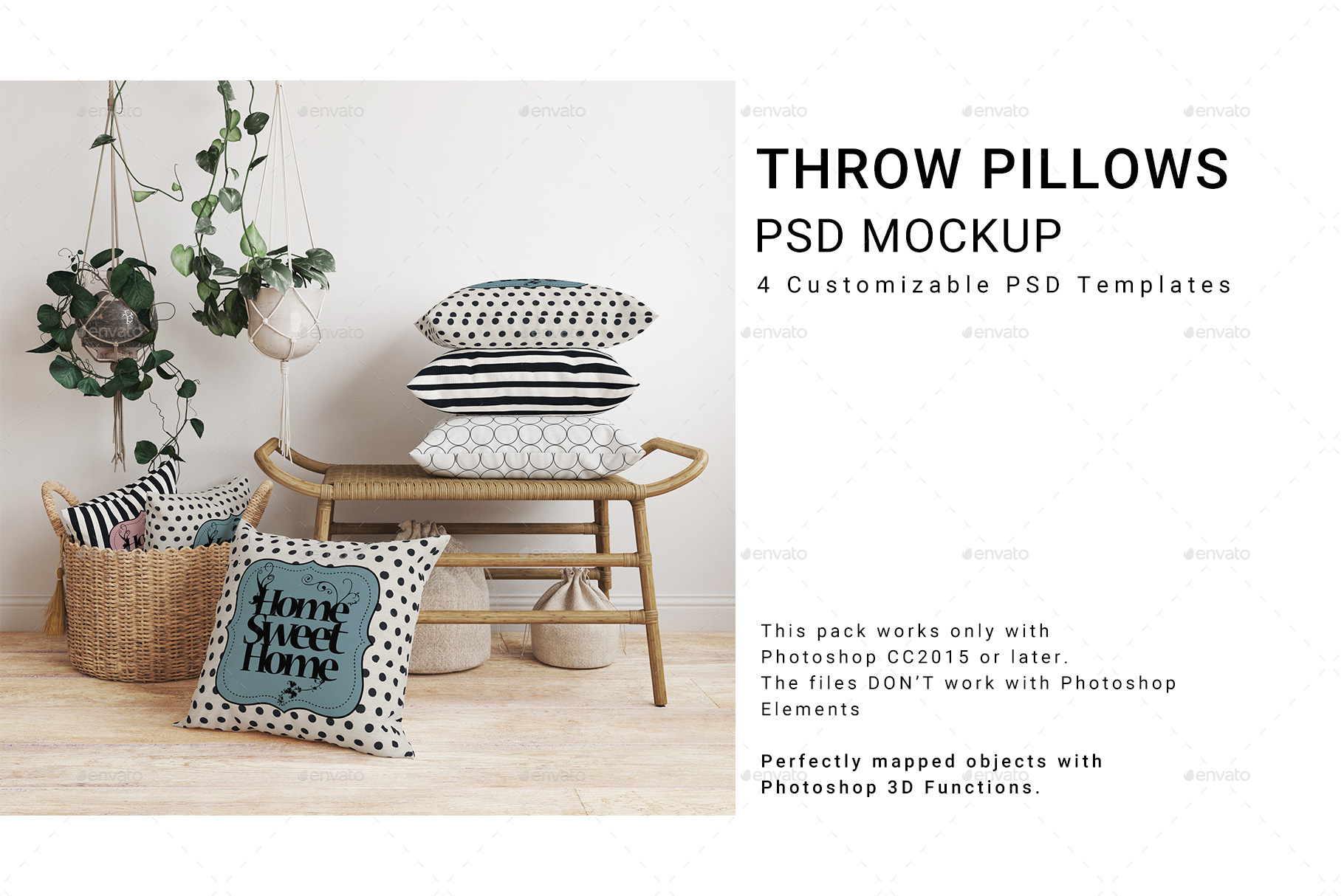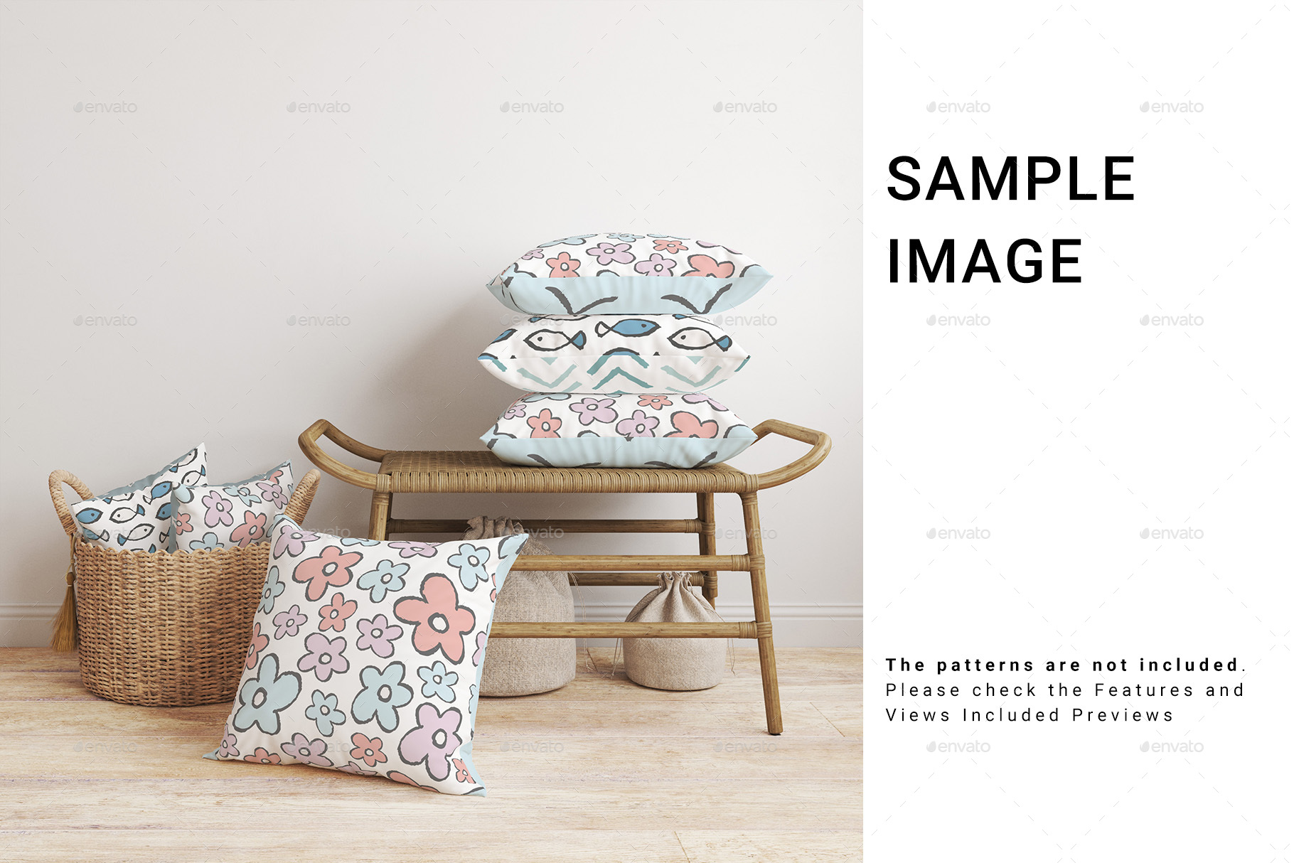 Throw Pillows & Pillows Stack Mockup Set