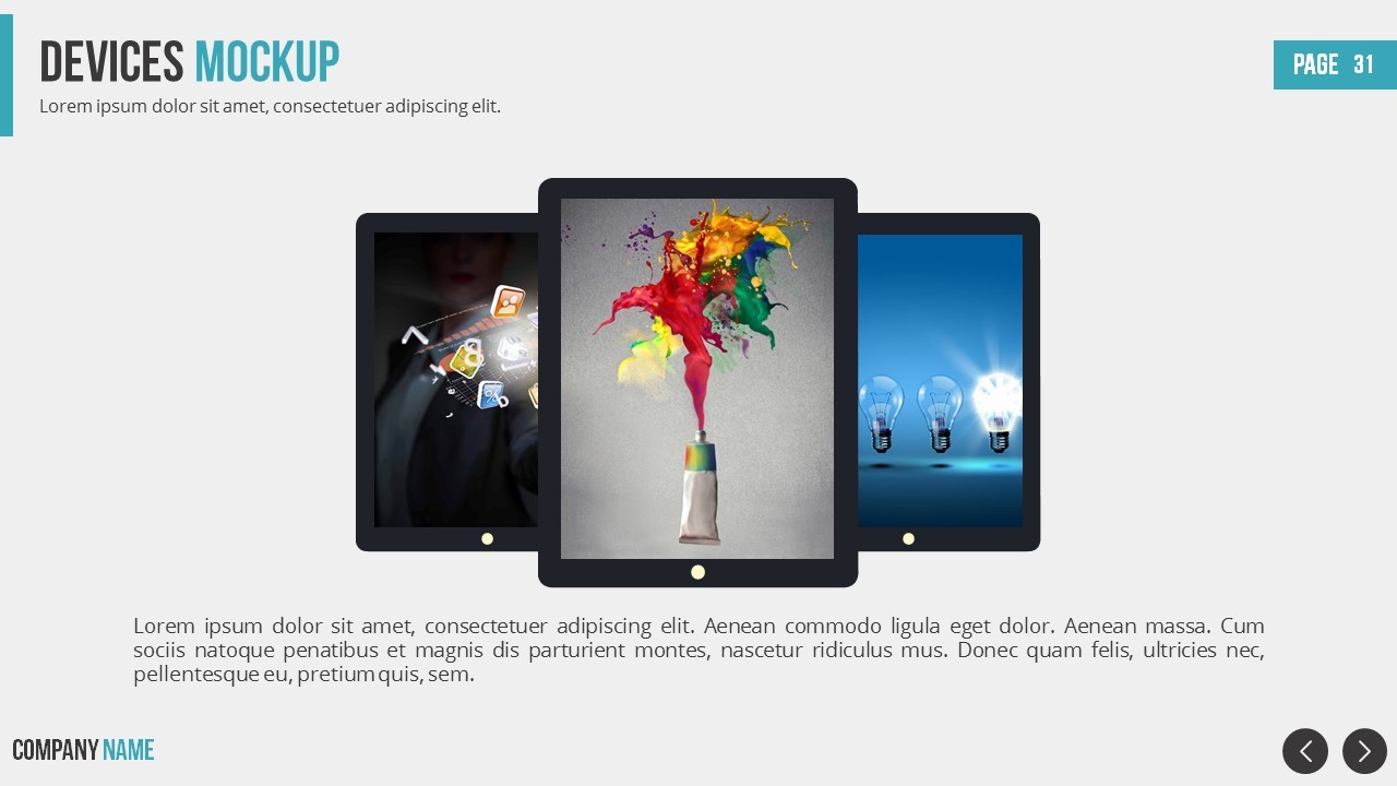 - Screen, laptop, tablet and mobile mockups.