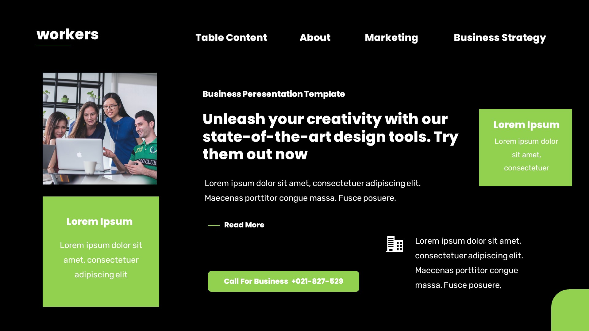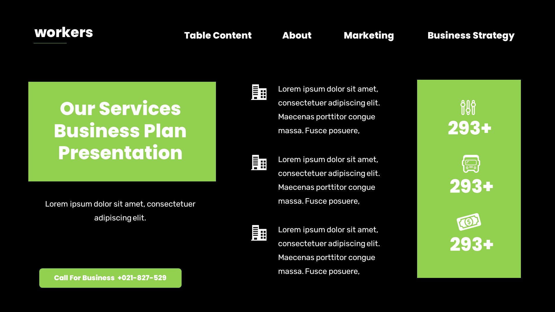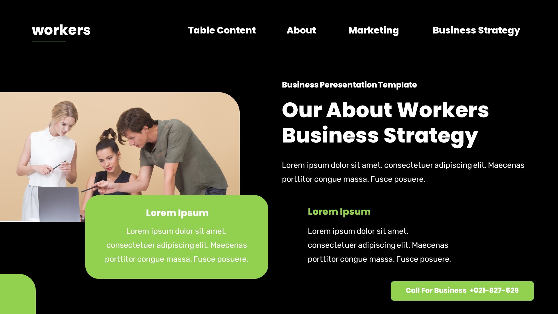 Workers Business Plan Powerpoint Template has a professional, ultra-modern and unique design, where each slide is created with love and attention to detail. Workers Business Plan Powerpoint Template is a Creative Powerpoint template that can be used for any type of presentation: business, portfolio, corporate, branding, advertising etc.Presentation Features