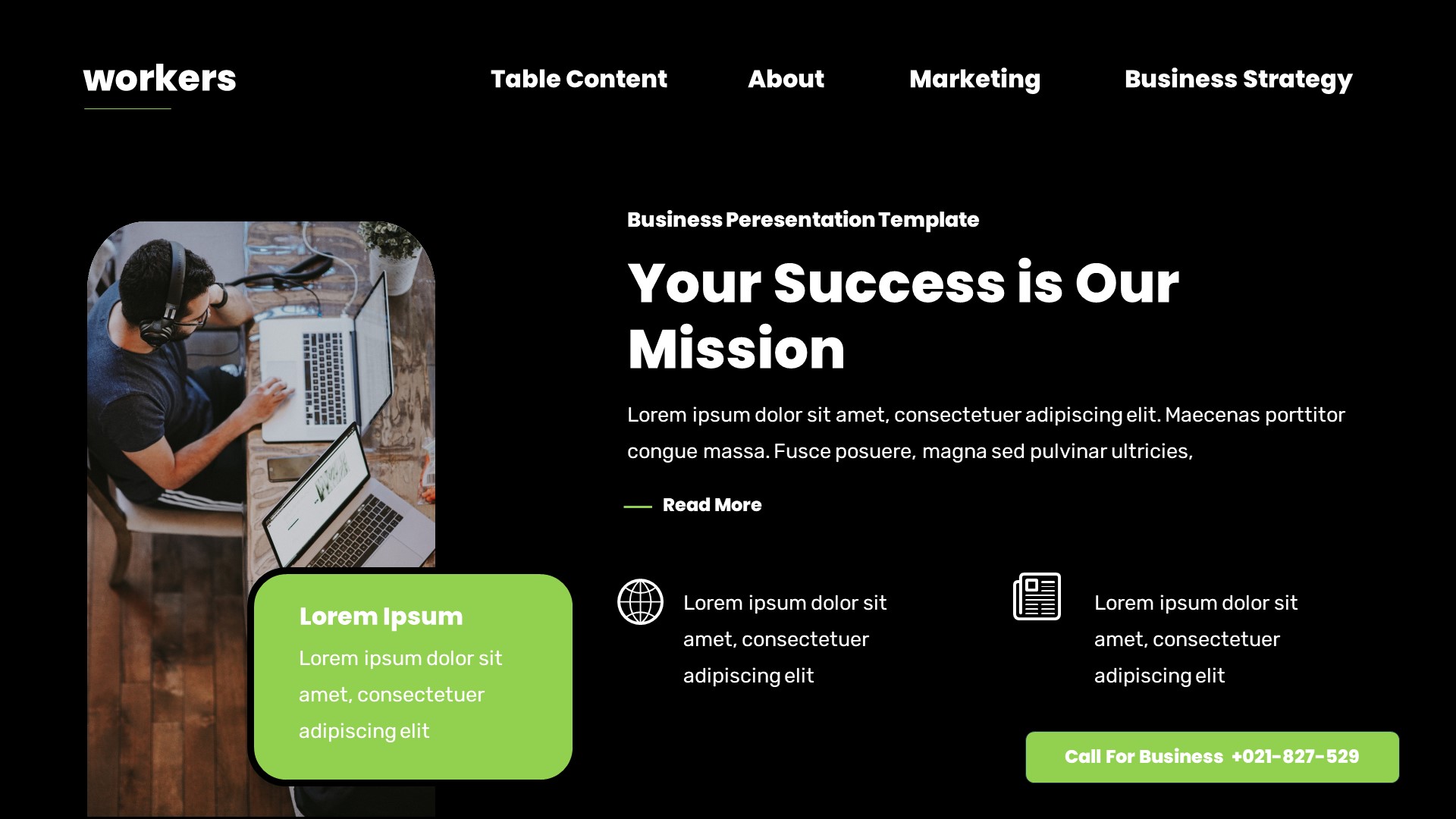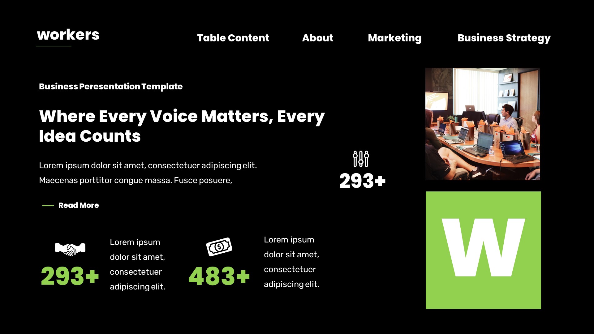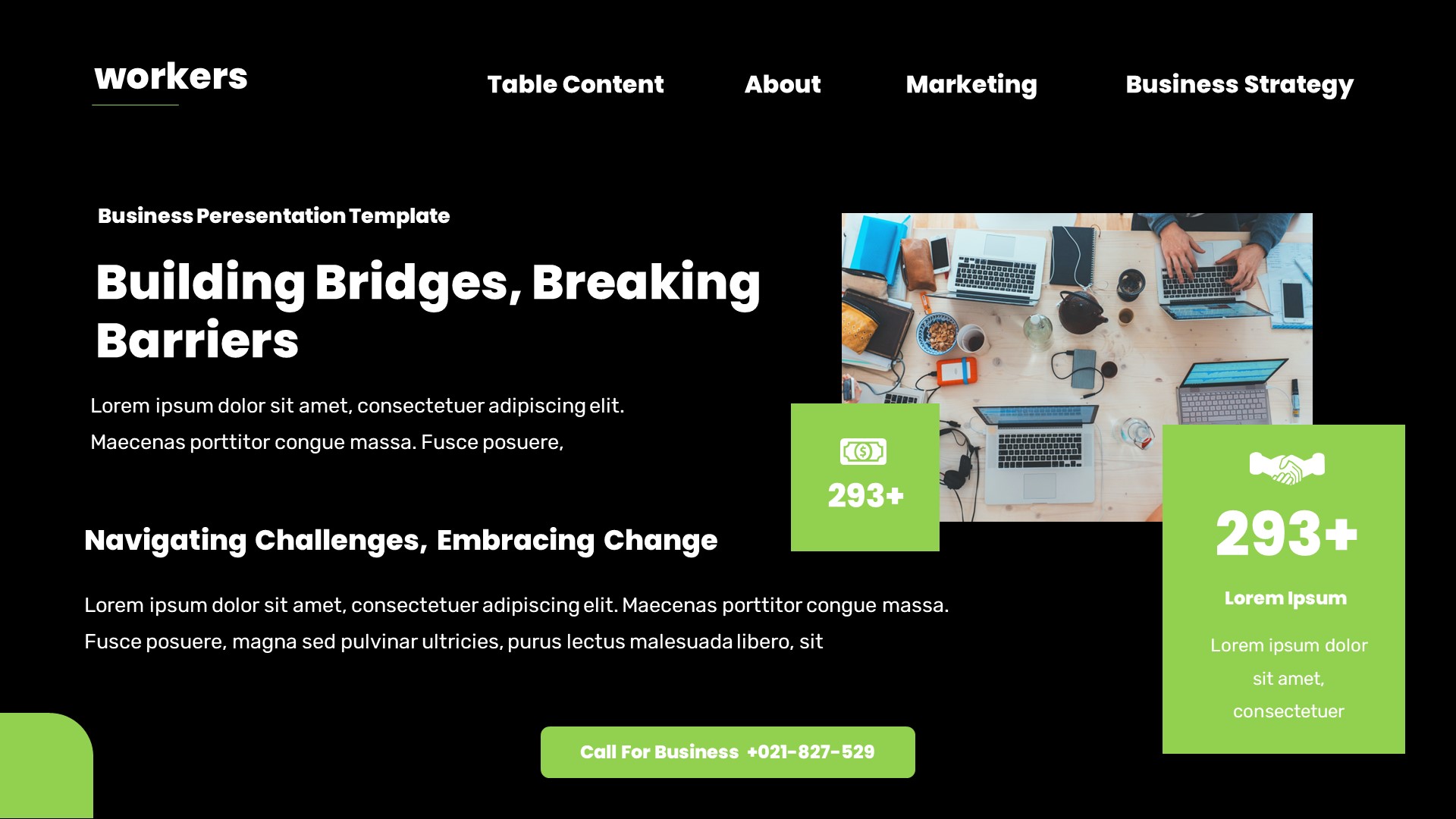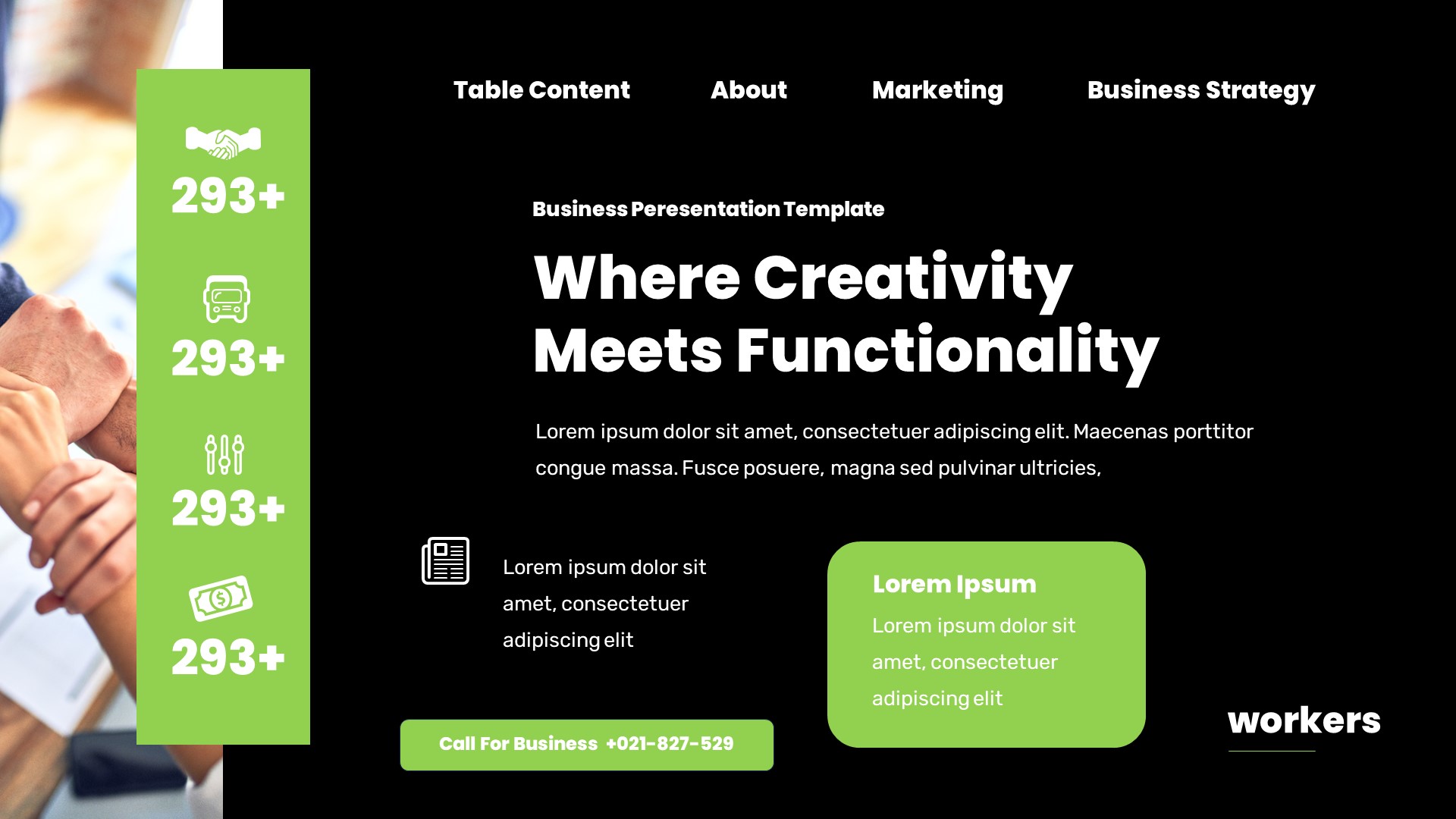 Workers Business Plan Powerpoint Template has a professional, ultra-modern and unique design, where each slide is created with love and attention to detail. Workers Business Plan Powerpoint Template is a Creative Powerpoint template that can be used for any type of presentation: business, portfolio, corporate, branding, advertising etc.Presentation Features